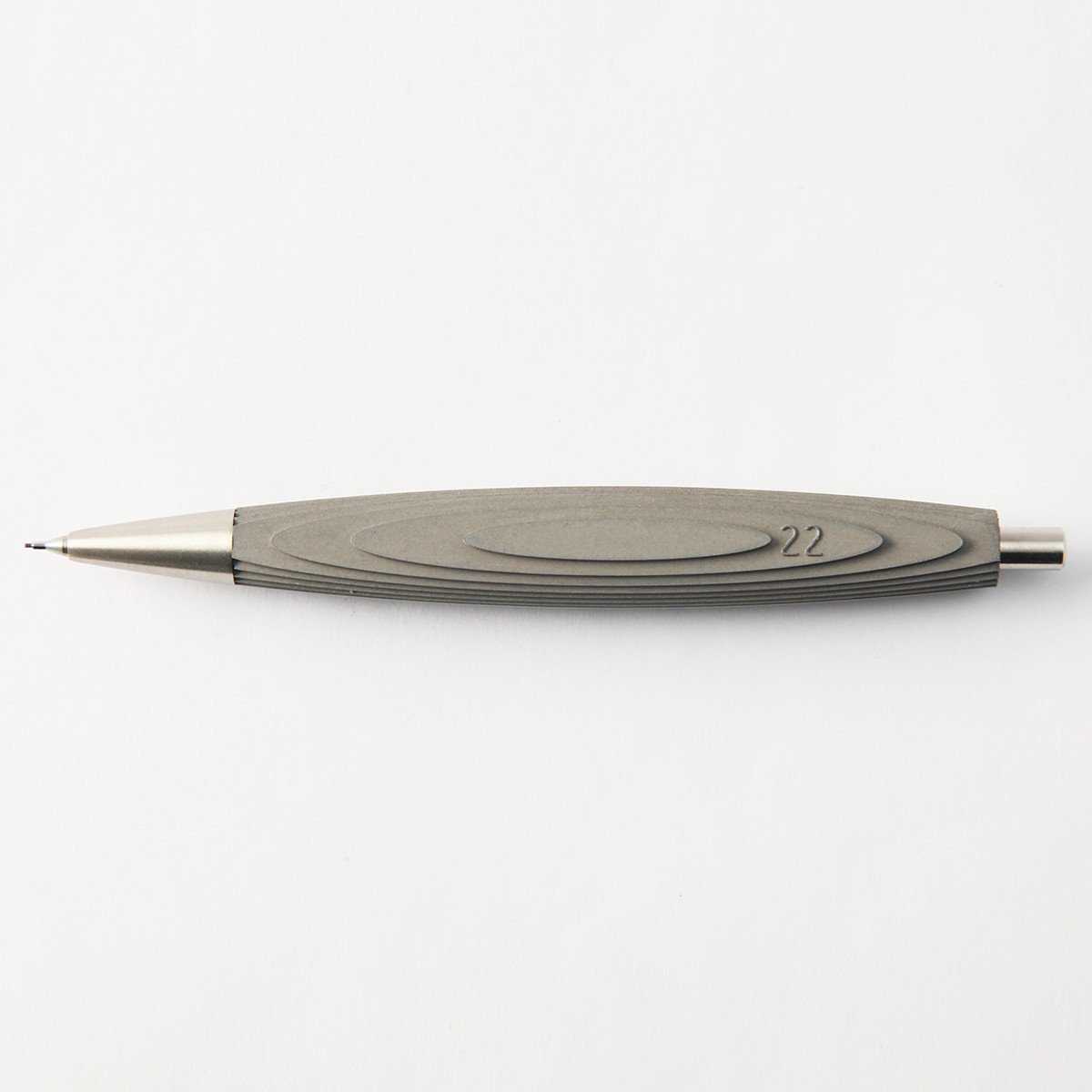 Utilizing the weight and strength of concrete along with a design that is contoured for your hand, 22's Contour Mechanical Pencil is the perfect writing tool. While maintaining its strength and form over years of use, the tool becomes darker and its rigid edges smoother as they respond and adapt to your hand.