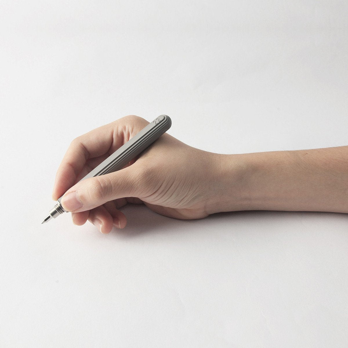 The design of our rollerball pen is aimed at users who need a serious writing utensil and who also appreciate the aesthetics of good design. Its weight gives it a serious heft that ensures accuracy, while its color and shape adapt to your hand the more you use it. Beyond its writing capabilities, the pen's ability to stand vertically on the table showcases the pen as it takes the role of a quiet but bold sculpture.