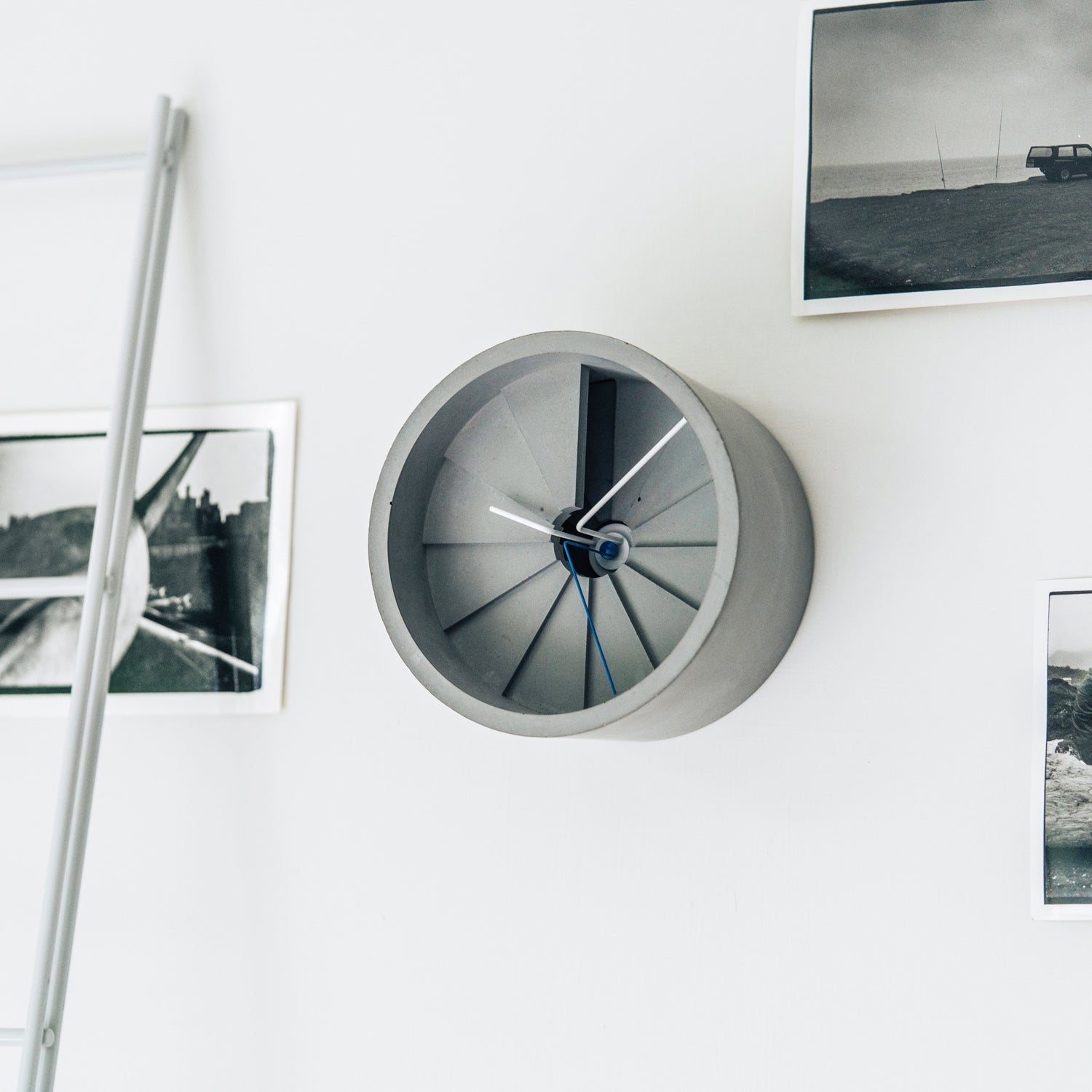 The wall clock is the introductory model of our 4th Dimension Timepieces. Designed and crafted in 22's workshop, this clock is the result of nearly two years of development and the skilled work of numerous experienced craftsmen. The hand-formed aluminum hands and the sculpted concrete of this wall clock make this clock not just a useful timepiece, but also, a work of art.