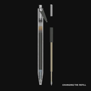 Every Modern Fuel pen is carved out of a solid block of metal and contains no plastic parts. The pen is an engineering marvel that fits together seamlessly. No two pens are exactly alike, the cone and body are mated together during production for a flawless presentation.