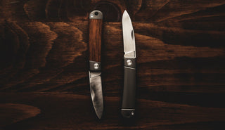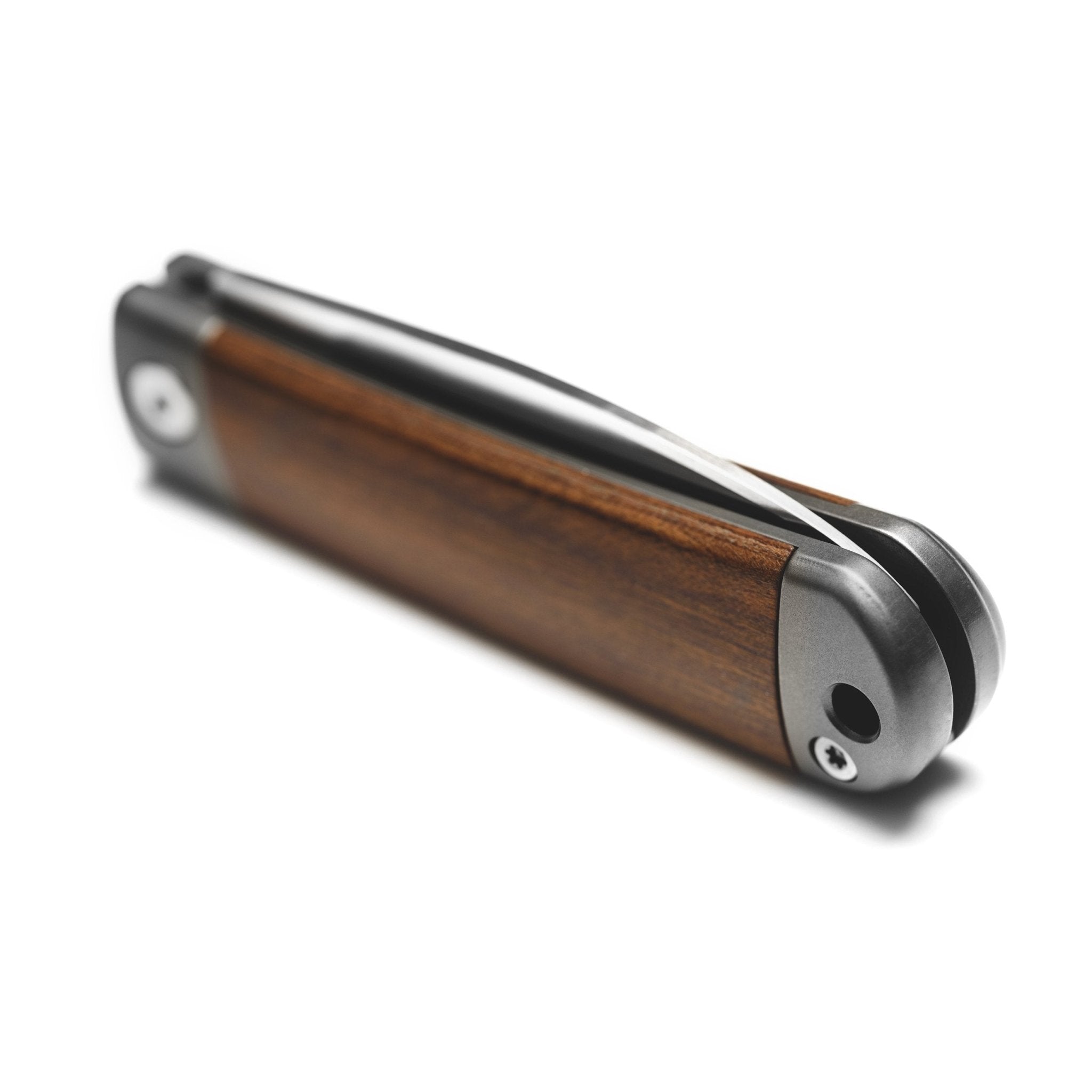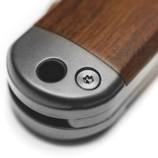 For the city street adventurer, the titanium model provides a no nonsense, sleek, utility knife — while our cherry wood inlaid model pulls more from the aforementioned Scandinavian roots.