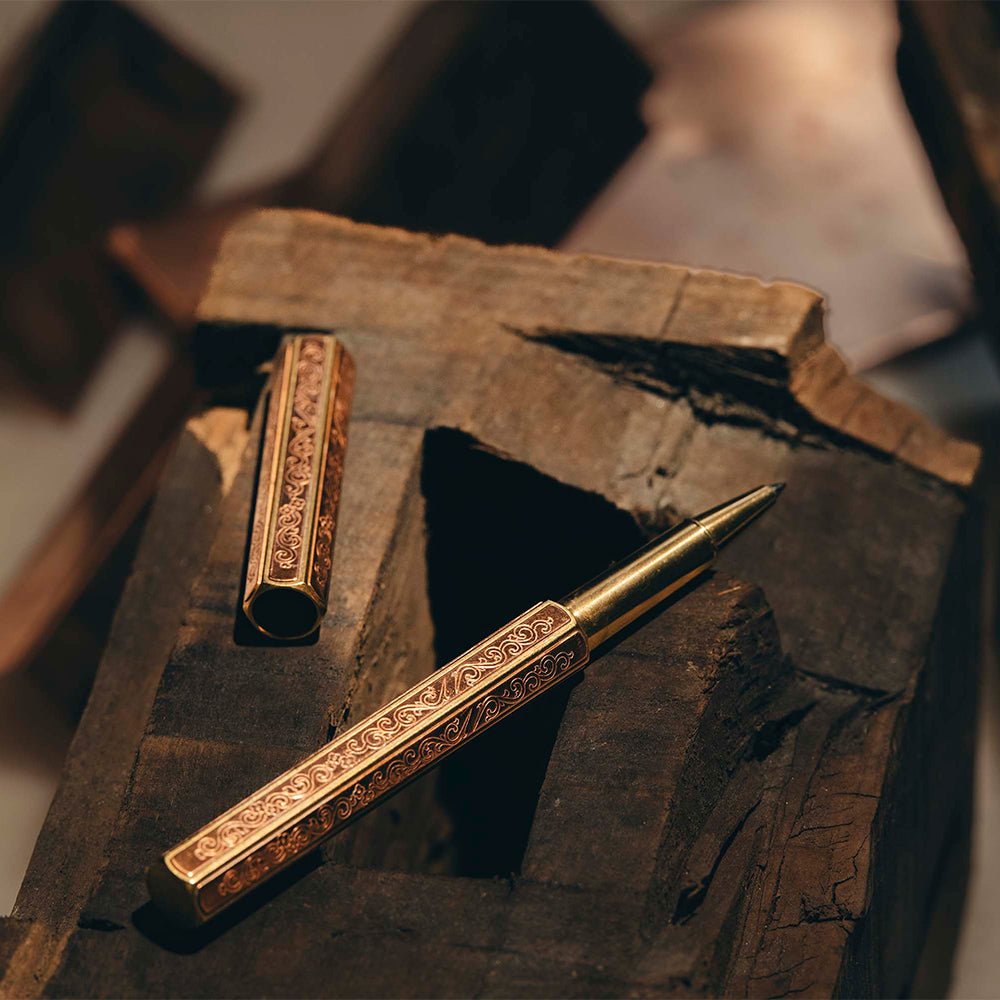 YSTUDIO uses orchids - a kind of flower symbolizes elegance in Taiwan, as the design theme of our Kazari Kanagu Rollerball Pen, paired with vibrant arabesque texture chiseled on the copper sheet and inlaid on the rollerball pen body. With the combination of centuries-old craftsmanship and writing utensils, you can witness our dedication and the lifelong devotion of Japanese craftsmen, and together we can convey the weight of words.