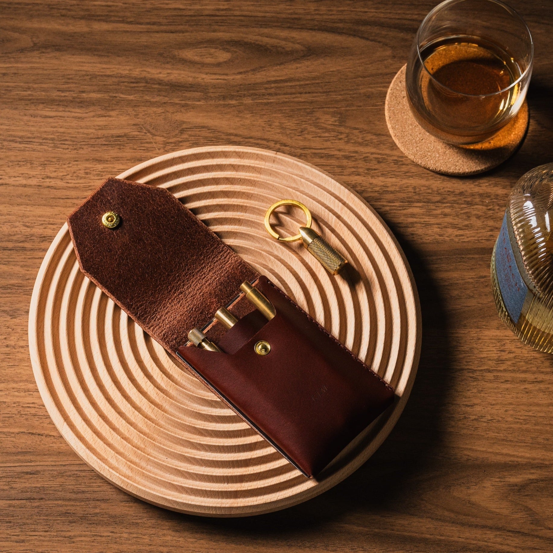 The Wingback Pen Slip is a new take on a classic pencil case, a sleek minimal way to keep your writing and drawing tools in one place. It fits up to 5 pens and closes in the front for a clean, minimal finish. Every Pen Slip is hand stitched in our London workshop and made from full grain Tuscan leather, selected for its firm and rugged quality. Over time the leather will develop a unique patina, picking up markings as trophies of the journeys you’ve shared together.