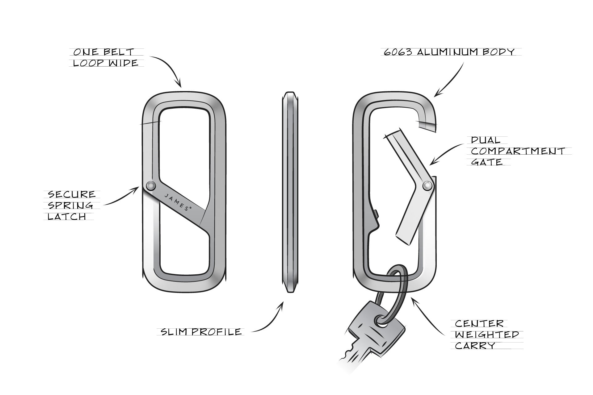 The Madison is the younger sibling of the Mehlville, which was our very first carabiner and continues to be a constant best-seller. Like the Mehlville, the Madison features a machined two-compartment design to keep your keys securely attached even when getting the Madison on or off a belt loop. The Madison is machined from billet 6063- T5 aluminum, which gives it a high strength-to-weight ratio. The thinner design of the Madison means that it always hangs straight; there’s no side-to-side rocking happening here. With less bulk, the Madison is lightweight, functional and beautiful. Where form and function meet, you’ll find The Madison.