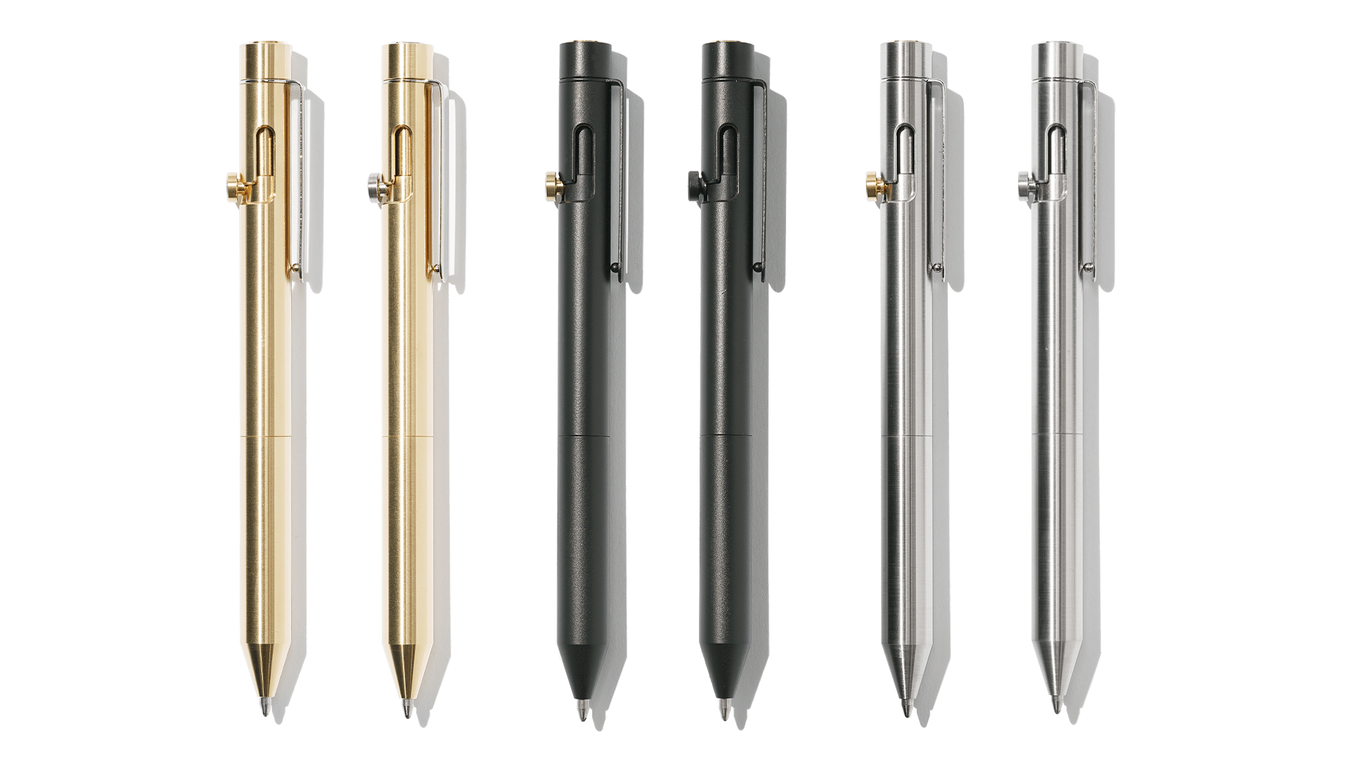 The first pen recreated in-house, the Bolt Action Pen v.02 offers all as did its predecessor — precision machined from solid bar stock — but with noticeably smoother action. In addition to design upgrades such as chamfered edges around the bolt track, v.02 allows customization in gold or silver in an updated end cap embedding the signature INVENTERY emblem as well as in the bolt hardware. Overall, v.02 offers nuanced design additions but, most noticeably, greater precision. If you own the first version, you’ll feel the immediate difference with this one.