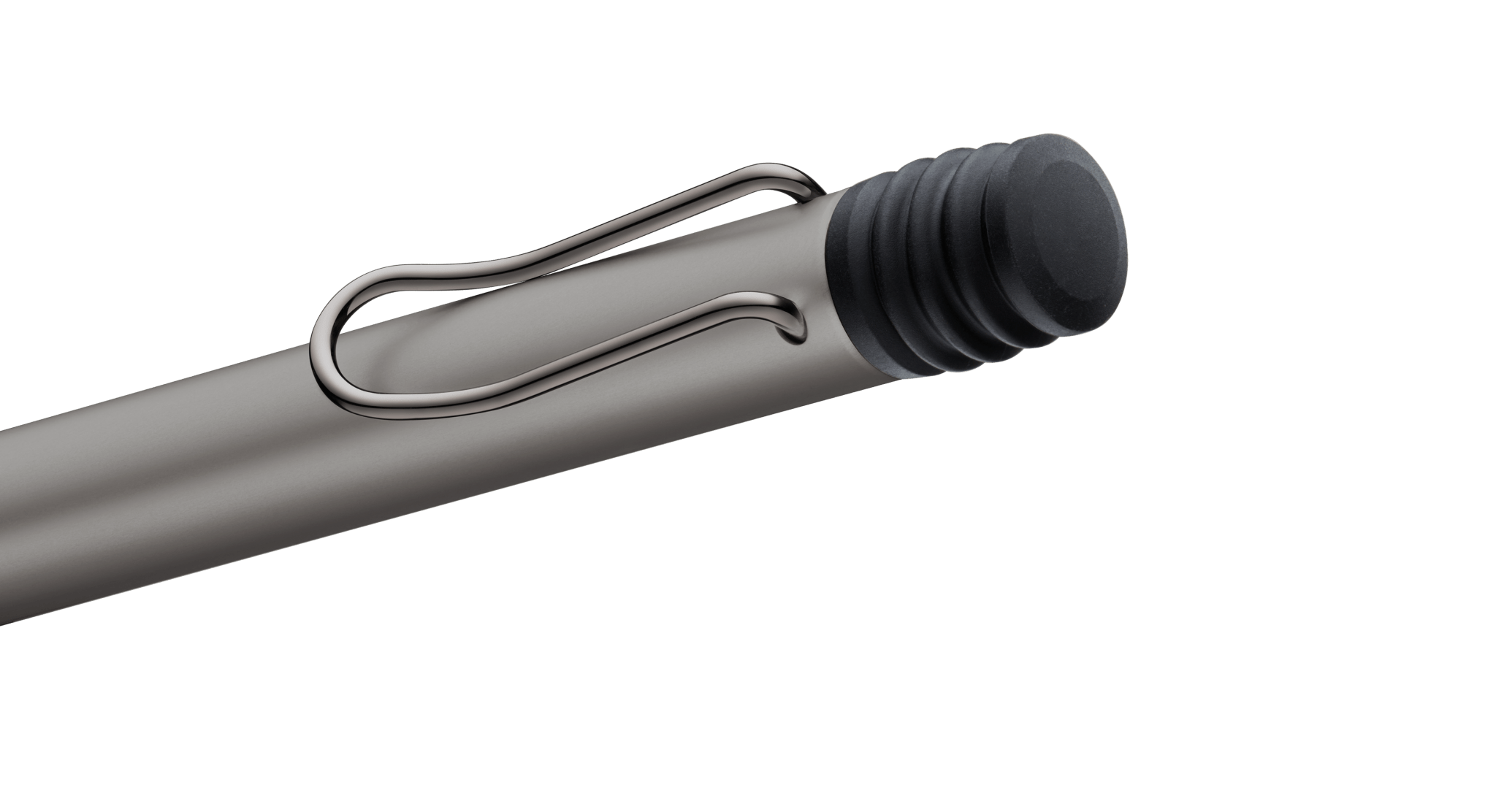 Ballpoint pen / Aluminium anodised in ruthenium colour / metal clip and details plated with ruthenium / ergonomic grip / with giant refill LAMY M 16 M black / with metal case