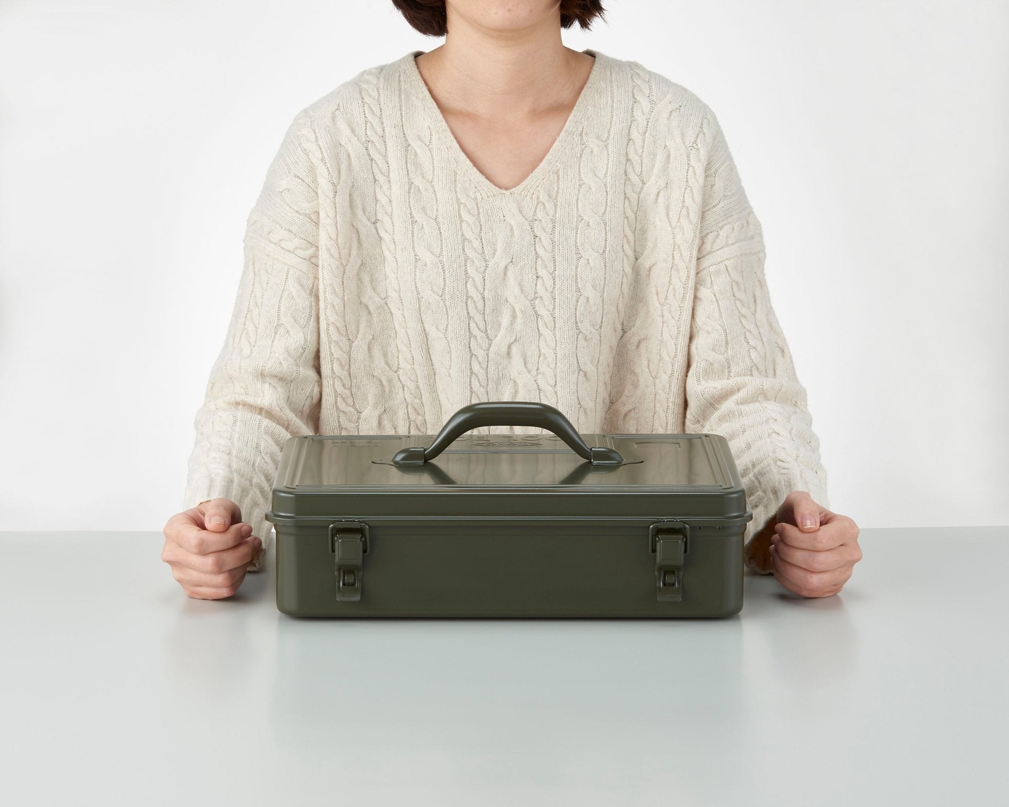 - It is almost the same size and shape as the conventional "TOYO Trunk Shape Toolbox T-360", but the major difference is that it has a handle on the top of the lid.