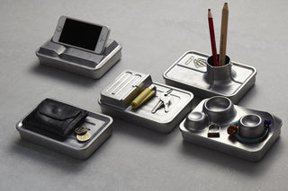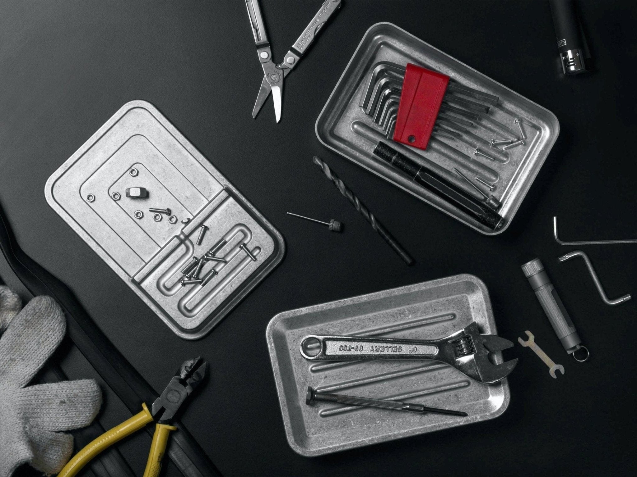 Waterfall is divided into two levels of elevations that are wide and useful. The meander river on highland is engraved for preventing cylinder objects, such as screws or lipsticks, from sliding, while the lower lake is good for placing larger items, for example, keys, tools, lighters and even a wallet.