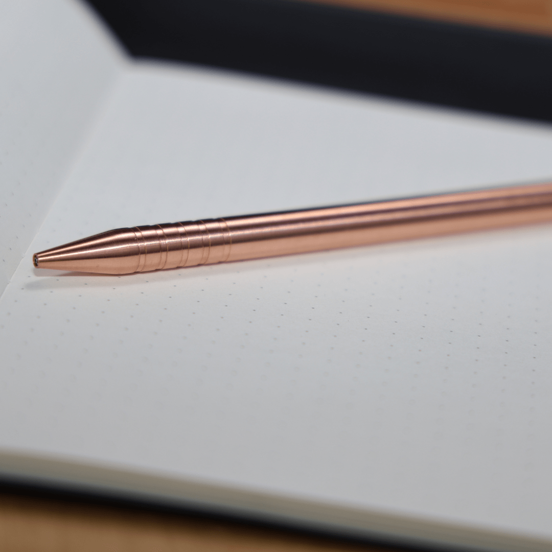 Every Modern Fuel pencil is carved out of a solid block of metal and contains no plastic parts. The pencil is an engineering marvel that fits together seamlessly. No two pencils are exactly alike, the cone and body are mated together during production for a flawless presentation.
