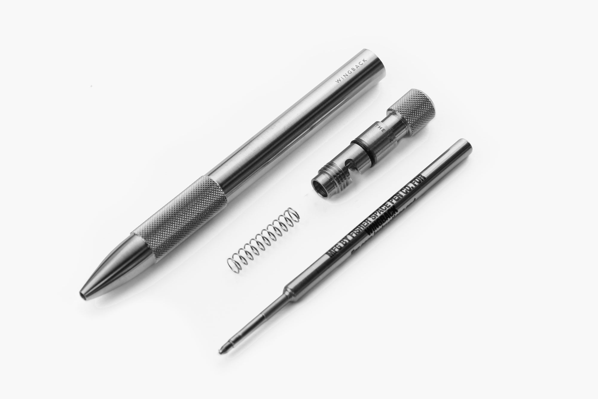 The Wingback Mechanical Pen has been designed to last for decades, not months, epitomising our “buy once” philosophy. Machine turned from a solid bar of aerospace-grade stainless steel, it is reassuringly weighty in the hand with a wide diameter to reduce writing fatigue and encourage time to be taken with every pen stroke. A satisfying single handed twist locks the nib mechanism in place.