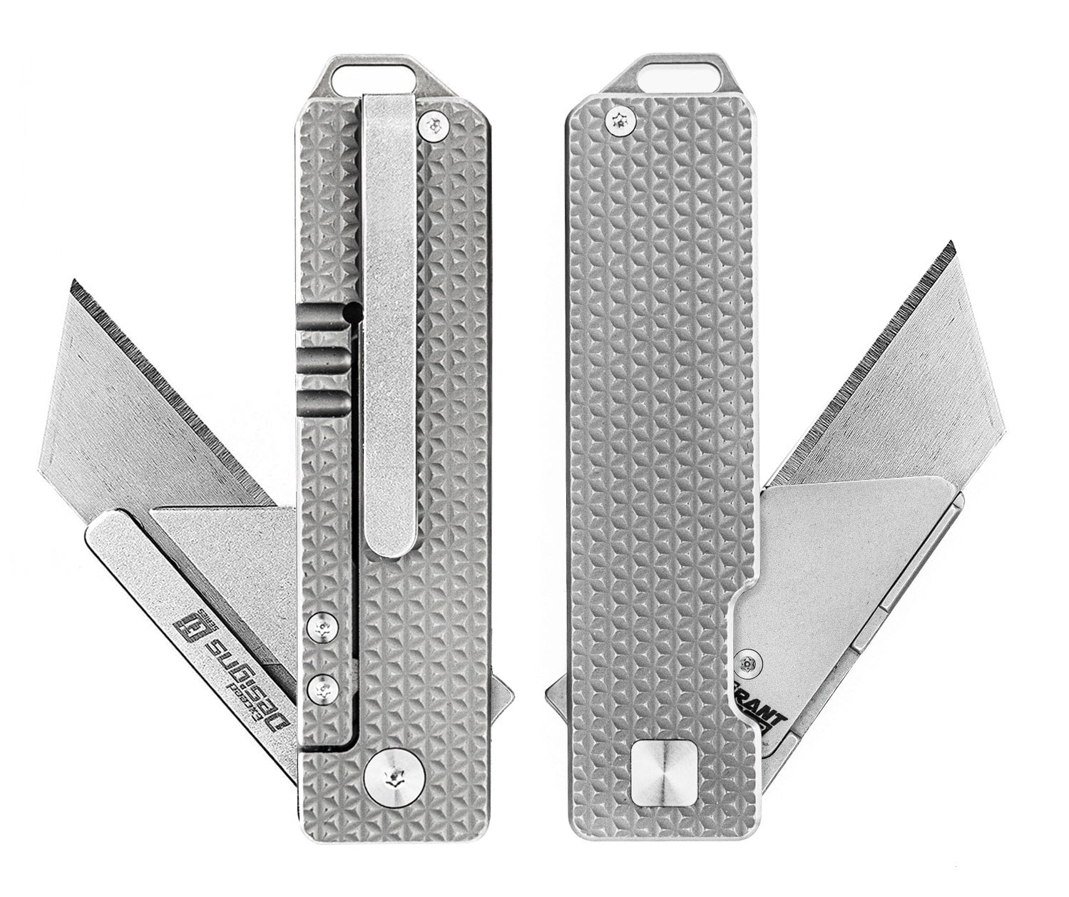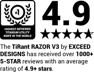 The TiRant RAZOR V3 low-profile titanium utility knife from Exceed Designs is the #1 Ti EDC utility knife sold worldwide. The new V3 TiRant gets smoother flipper action & a strengthened QUICK-RELEASE blade lock with near-zero tolerances all around. Full brass caged ceramic ball bearing action. Aerospace grade 6AI-4V Grade 5 Titanium stonewashed & skeletonized scales with the tried and true stainless stonewashed blade clasp with double notch catchment. This pocket knife / utility knife tool is a must have for any EDC application!