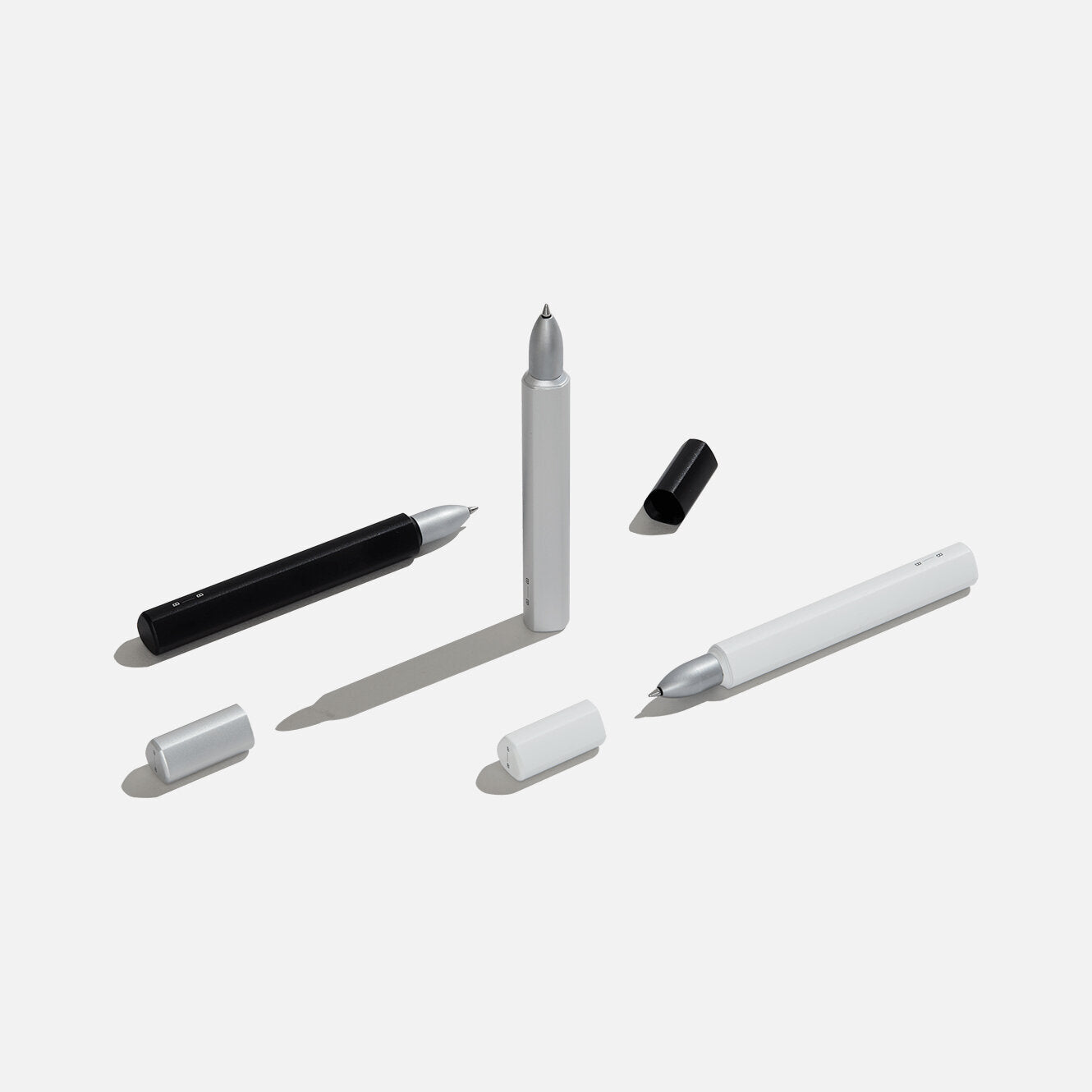 A three-sided rollerball pen. Triangles are a bit rough around the corners, so we shaped it into something that resembles an 'Onigiri', a hand-gripped Japanese rice ball shaped like a triangle without hard edges. An Onigiri is simple and clean, solid, and easy to hold - essential characteristics that the Onigiri Pen shares.