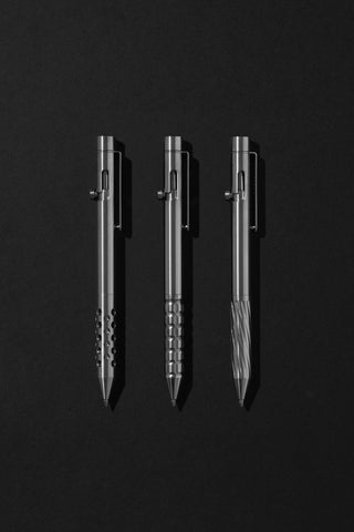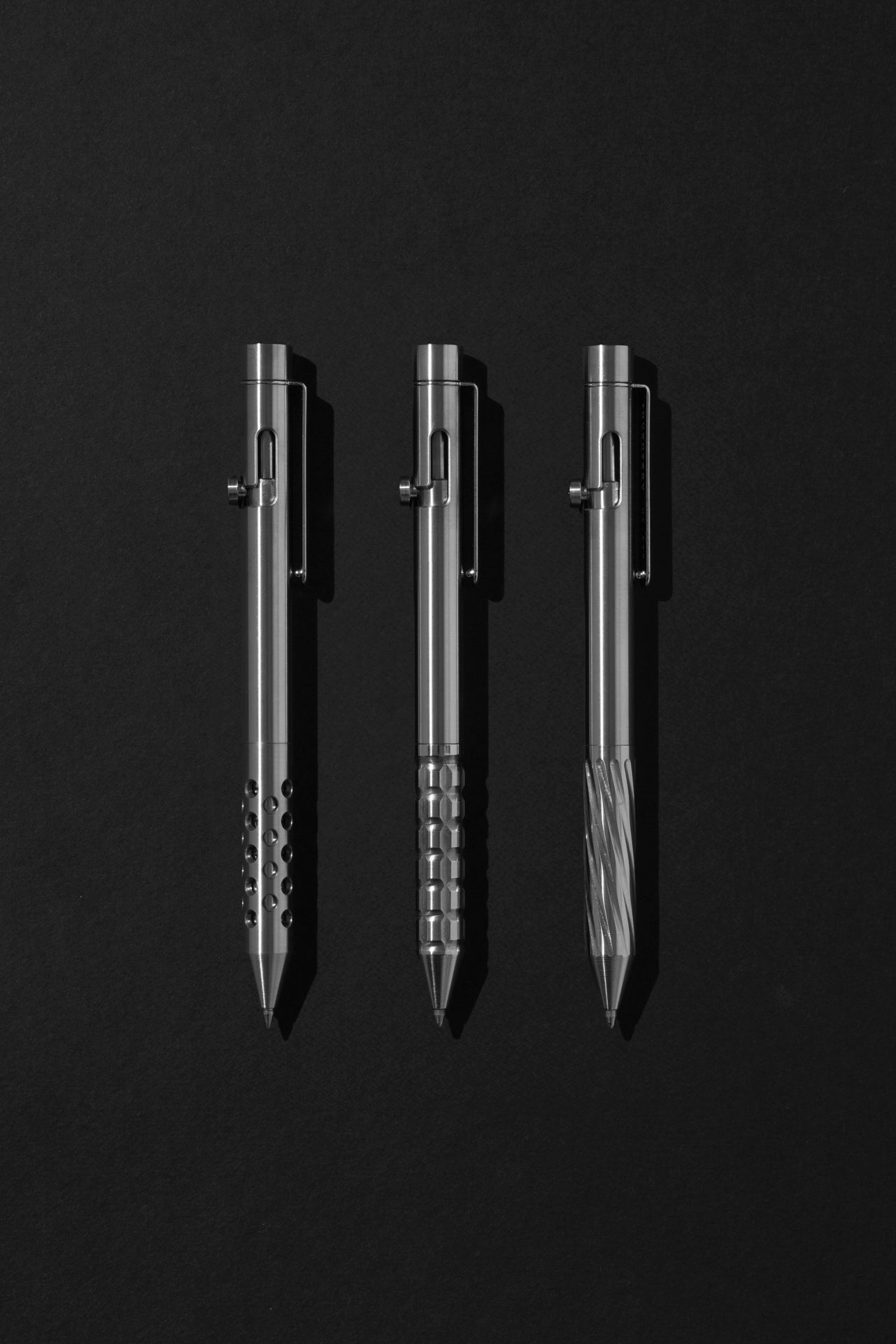 The Bolt Action Pen v.02 offers all as did its predecessor, but with noticeably smoother action. In addition to design upgrades such as chamfered edges around the bolt track and a newly fitted thread with o-ring, the Bolt Action Pen v.02 now sports an INVENTERY signature emblem in gold or silver. Overall, v.02 offers nuanced design additions but, most noticeably, greater precision. If you own the first version, you’ll feel the immediate difference with this one.