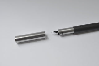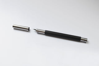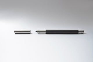The 7000 Carbon is a cartridge/converter fountain pen with a minimalist approach and a strong focus on blending different materials and textures. While most of its construction is in stainless steel, the body is made in linear carbon fiber. Cap, section & body are push-pull to open/close. It utilizes international short/long cartridges or compatible ink converters (one included).
