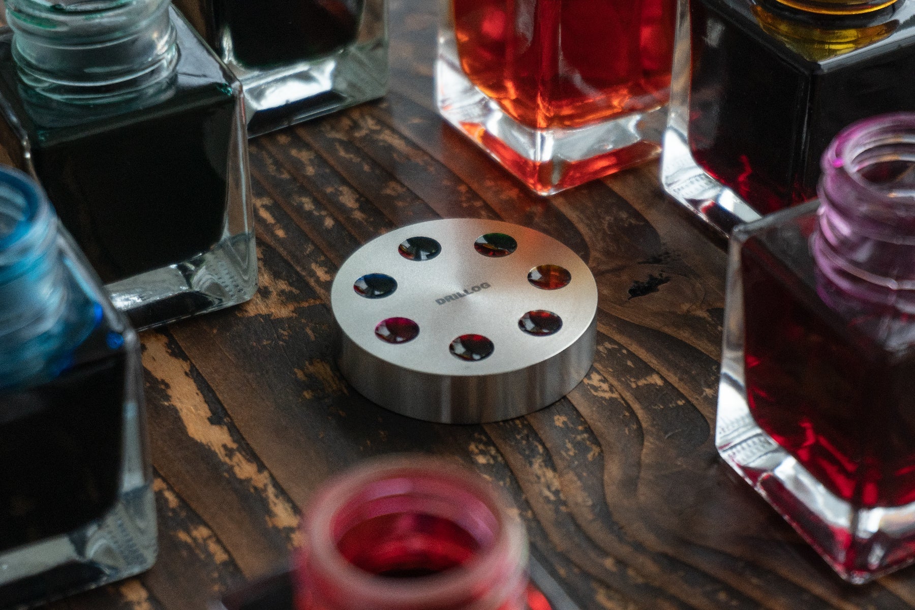 A multi-color ink palette made specifically for DRILLOG. By putting a small amount of ink in the holes, you can enjoy using different colors of ink just like a paint palette. The paddle palette has a special surface finish that prevents ink from spilling even when the palette is tilted, so you can enjoy the light and easy use of ink that only DRILLOG products can provide.