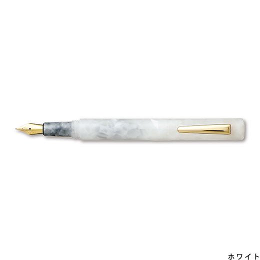 A fountain pen with a beautiful marble pattern. The fine (F) nib on the acrylic shaft, which changes its expression depending on the angle, has a 24-karat gold plate finish for a smooth writing feel. The short size with a clip makes it easy to carry. It comes in a box and is also recommended as a gift.