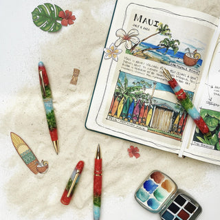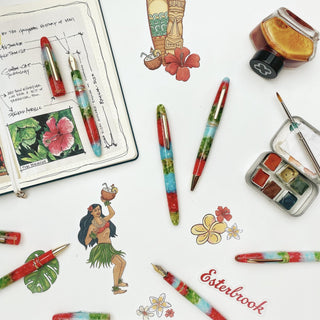 Introducing Maui. The latest Estie in our collection. Taking inspiration from the varied geological attributes of Hawai’i’s famous island, this pen is composed of a stacked acrylic blend in vibrant shades of blue, green, and red. The first of its kind for Esterbrook, we could think of no better pen – or place – to represent the enigmatic charm of the island.
