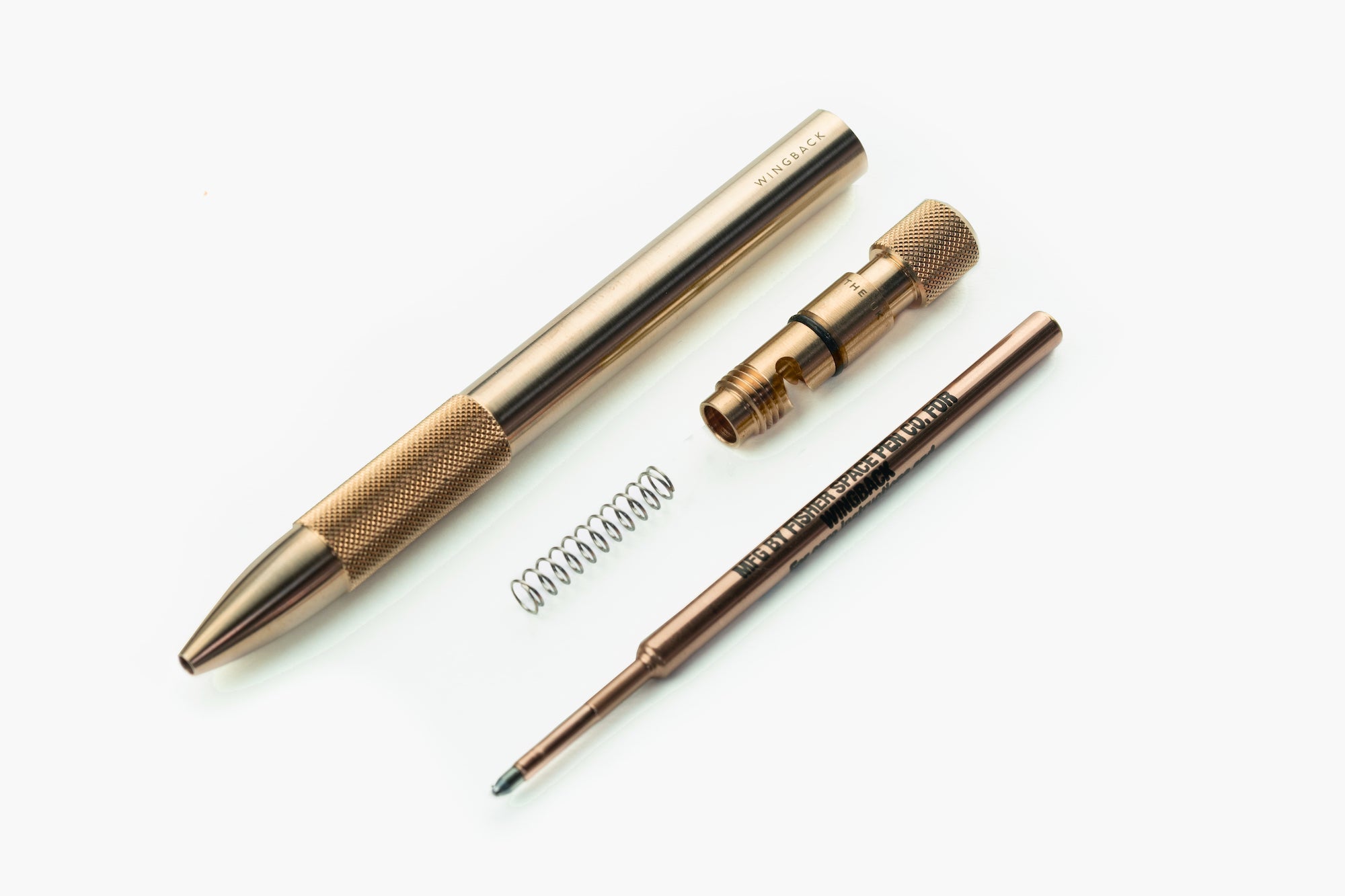 The Wingback Mechanical Pen has been designed to last for decades, not months, epitomising our “buy once” philosophy. Machine turned from a solid bar of aerospace-grade brass, it is reassuringly weighty in the hand with a wide diameter to reduce writing fatigue and encourage time to be taken with every pen stroke. A satisfying single handed twist locks the nib mechanism in place.