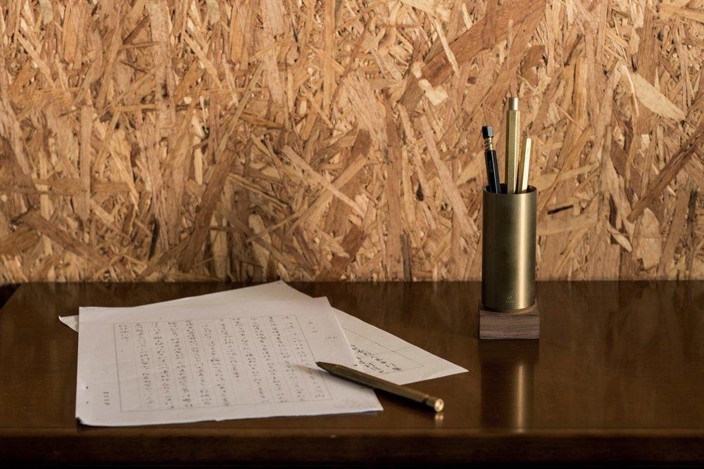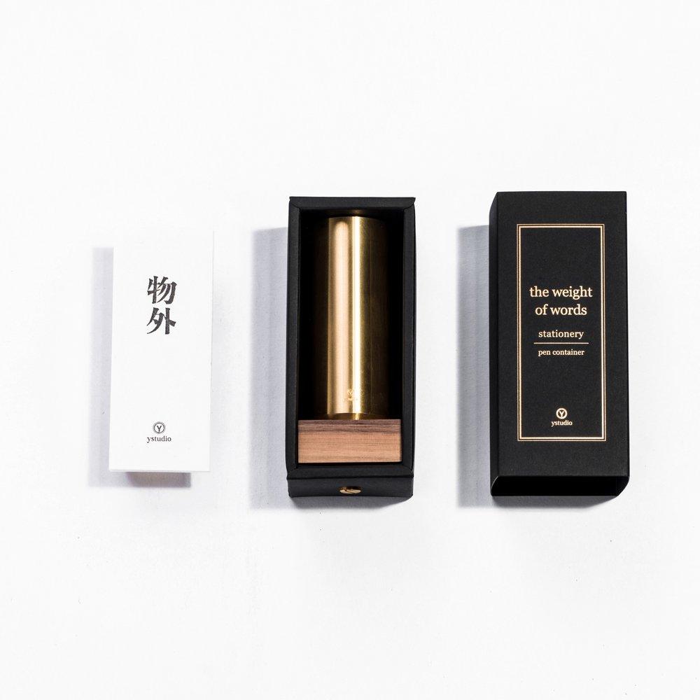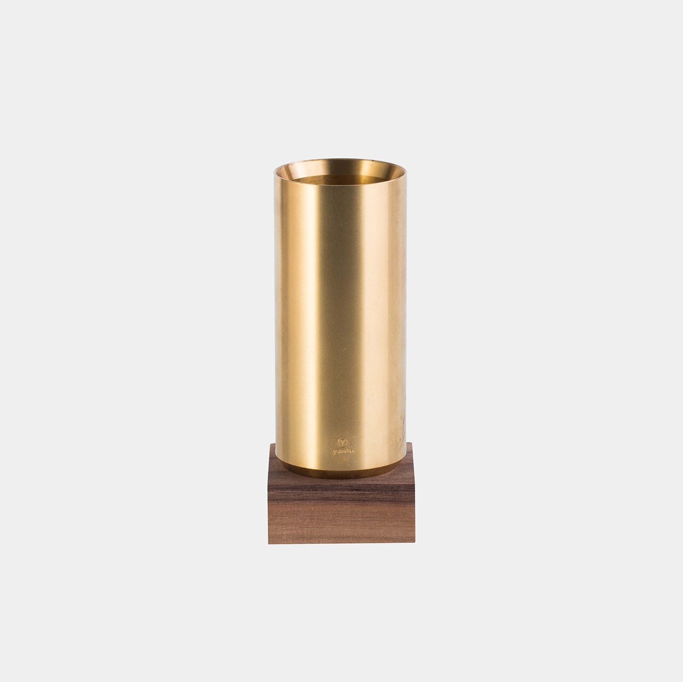 The pen container is cut from a brass cylinder, as well with the hand-made walnut base. Simple and clean shape. Can be used to store all kinds of pens and accessories.