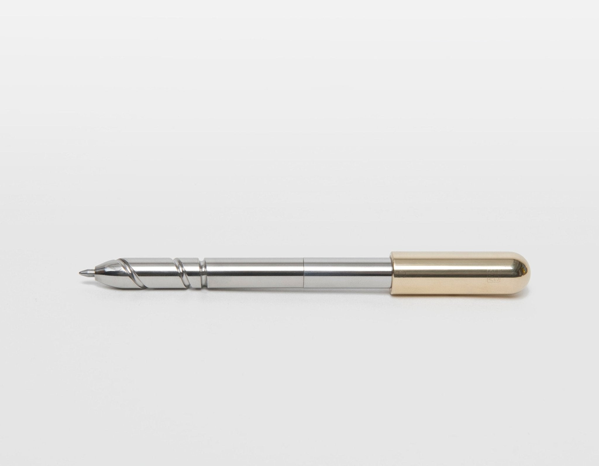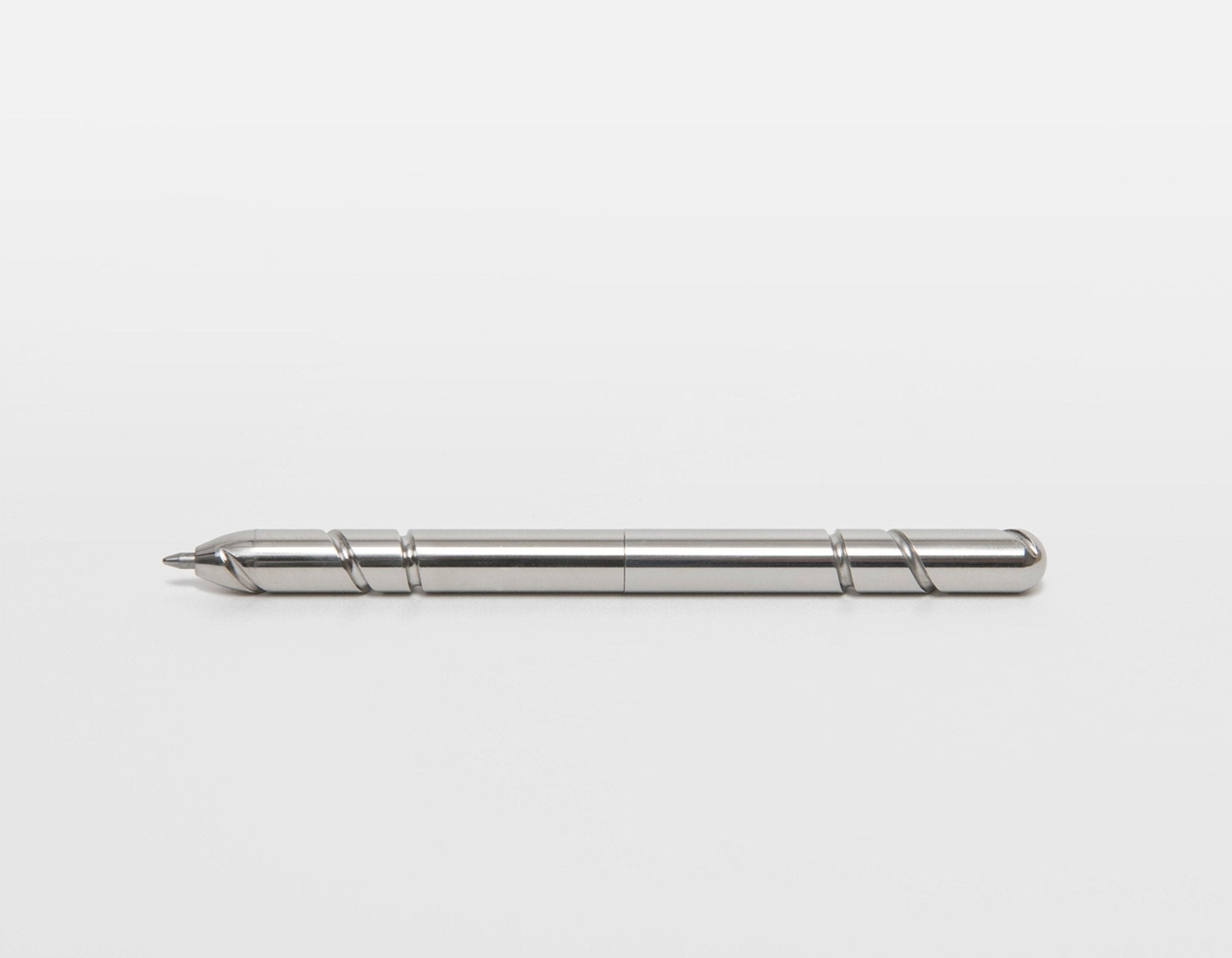 The Spiral Pen has a novel locking mechanism where a hemisphere in the cap travels along an irregular spiral track. As you twist, the cap accelerates off the pen.