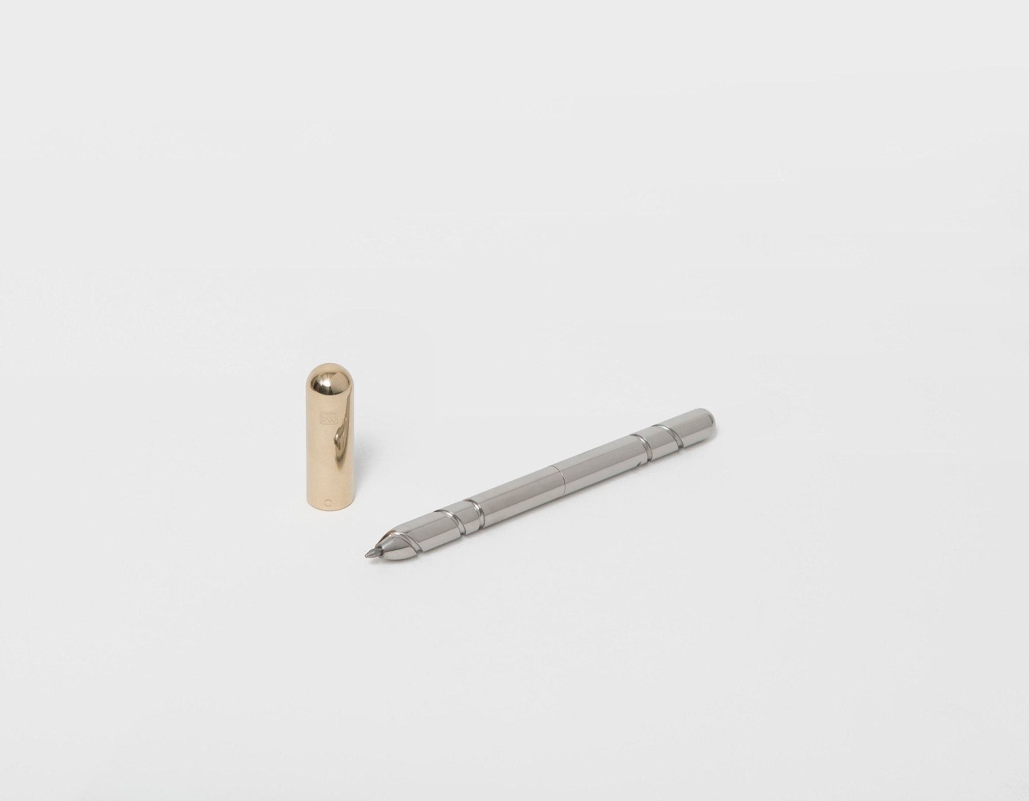 Polished brass cap and stainless steel body, comes in solid pine gift box.
