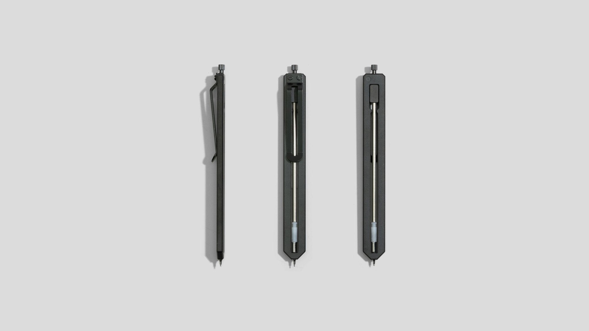 Pencil Type-C is a mechanical bookmark pencil. Machined out of Titanium, it travels nicely in a pocket or notebook.