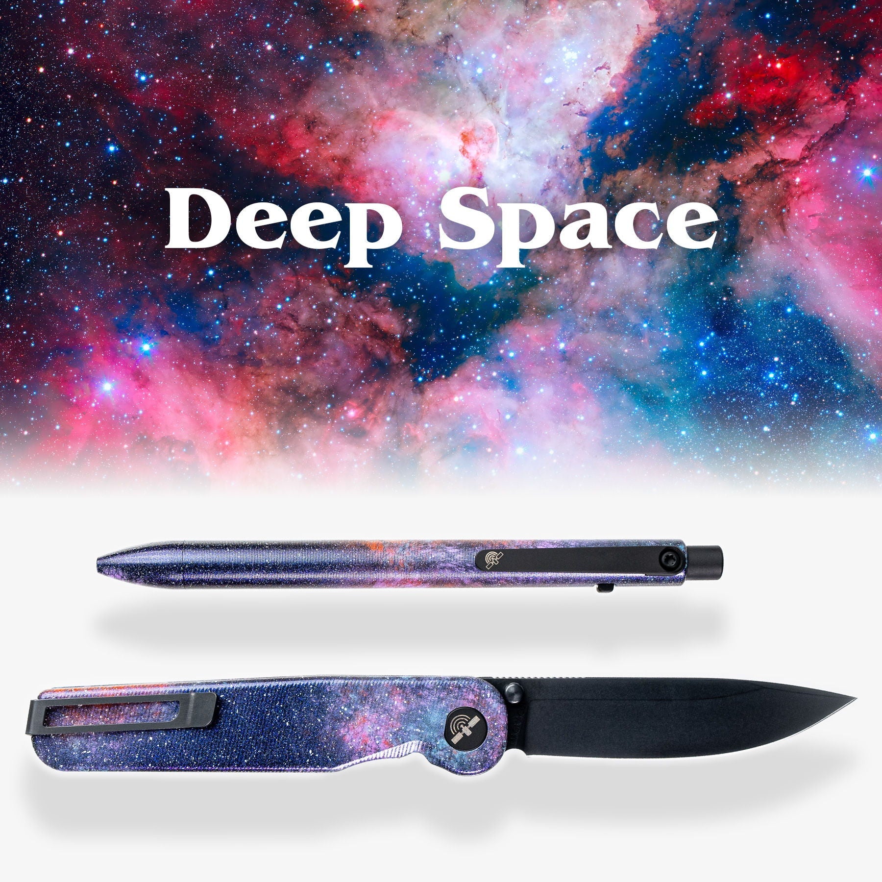 Inspired by the Deep Space Side Click Pen, the Deep Space Rockwall features custom Cerakote and engraving on top of the titanium base.
