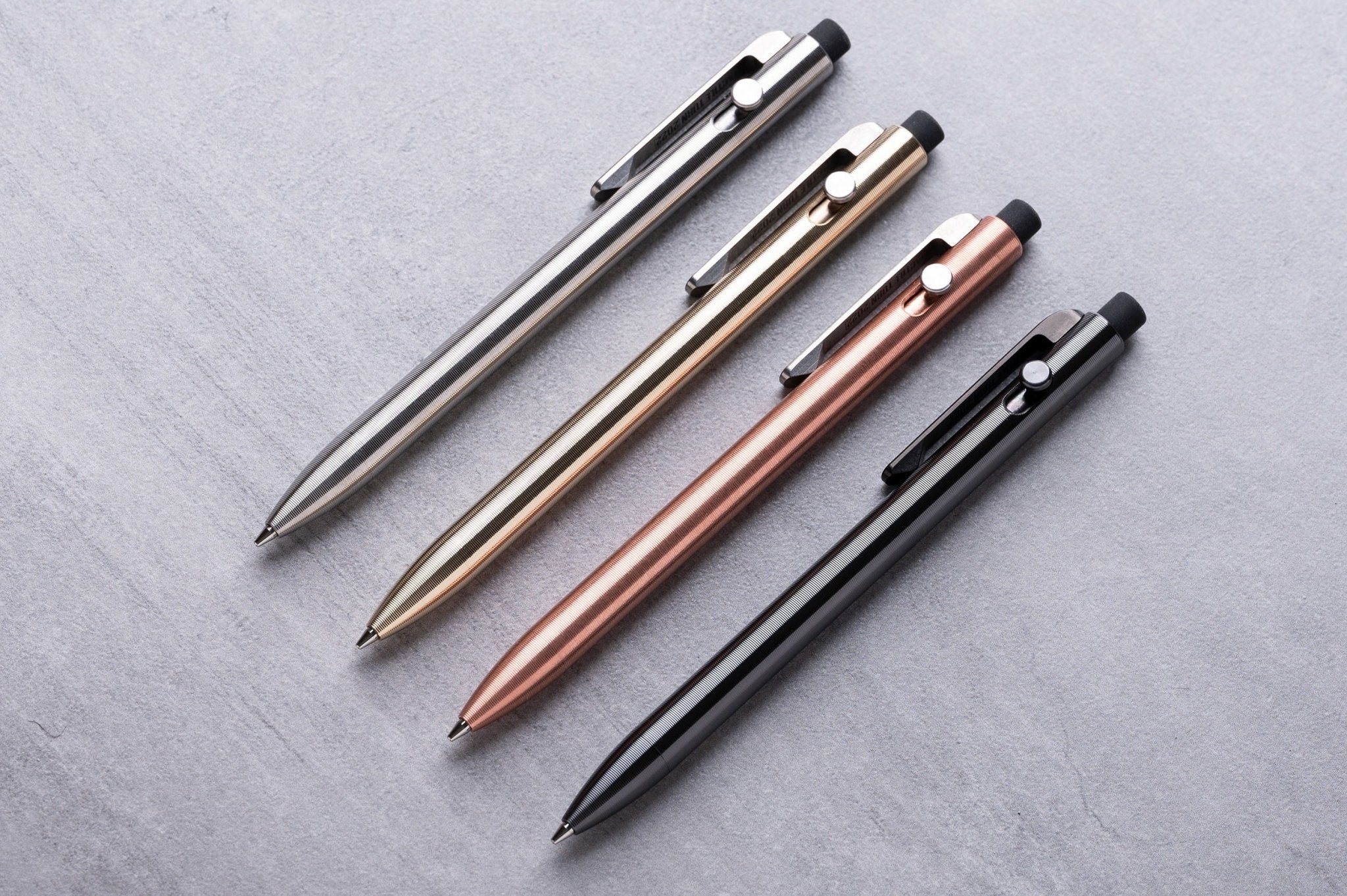 We made some pencils in 2018 and discontinued them in 2020 because we felt like they needed an update. Our new version comes with a slimmer body, bolt on the side to advance and retract the lead, and replaceable friction fit erasers on the back. The all-metal construction makes this an heirloom-quality pencil that you'll be able to pass down to future generations. In other words, these ain't your typical BICs.
