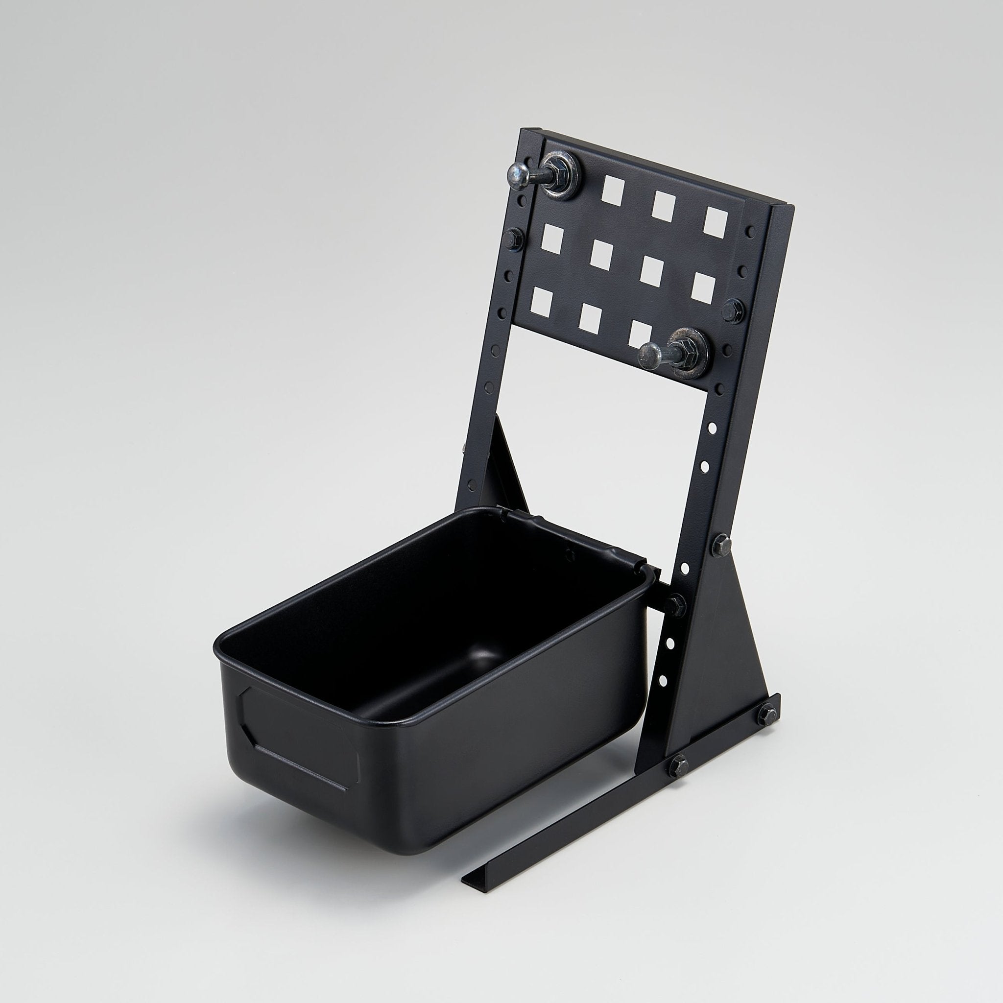 The hand bin stand boasts high expandability. The standard style is a set of a perforated panel and a bottle stand, but it can also be used with two bottles. It can also be used with two panels. (Hand bins and punching panels are also available for purchase separately.)