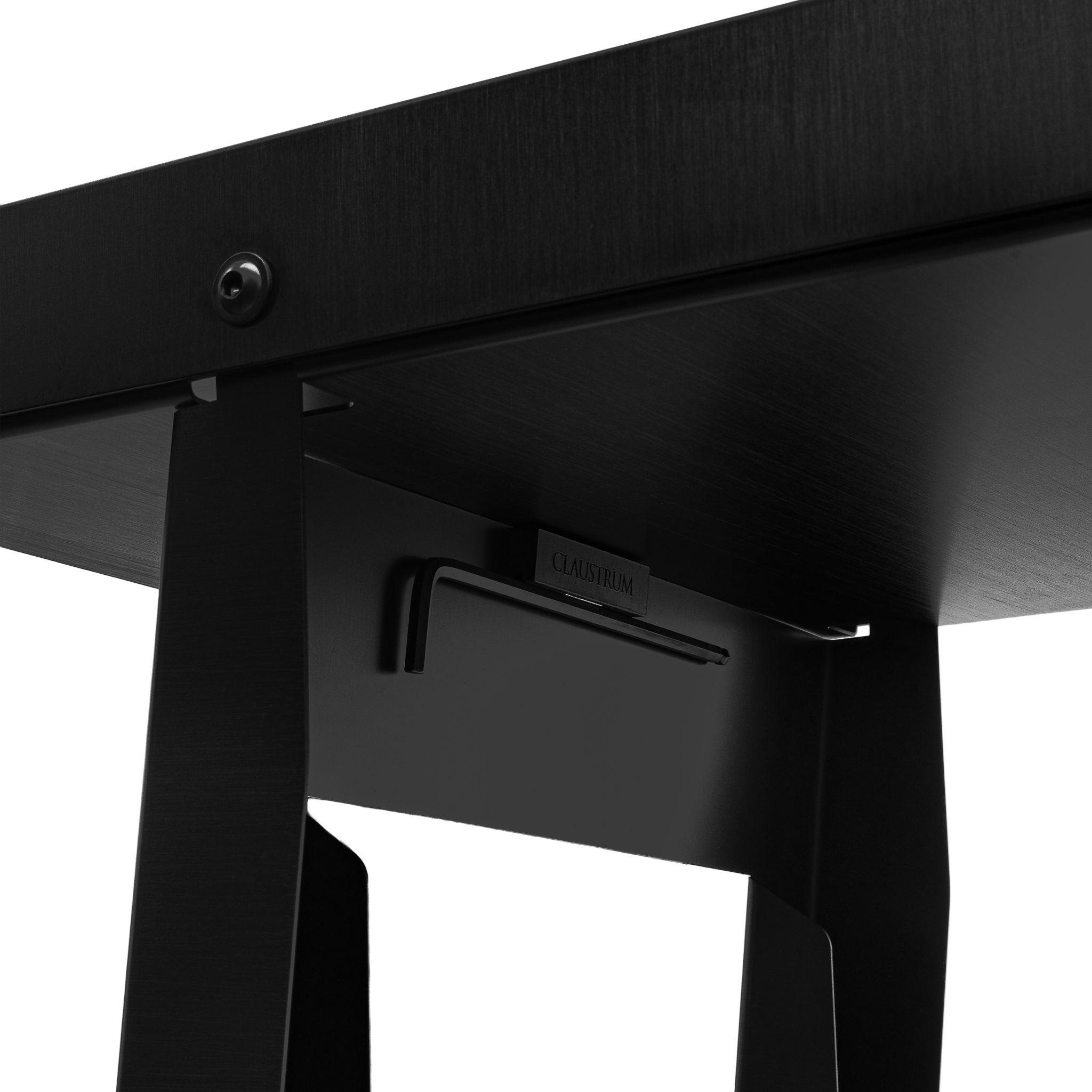 ディスプレイテーブル/スタンディングデスク。 A5052アルミニウム製、ブラックアルマイトヘアライン仕上げ。ソフトキャリーケース付属。