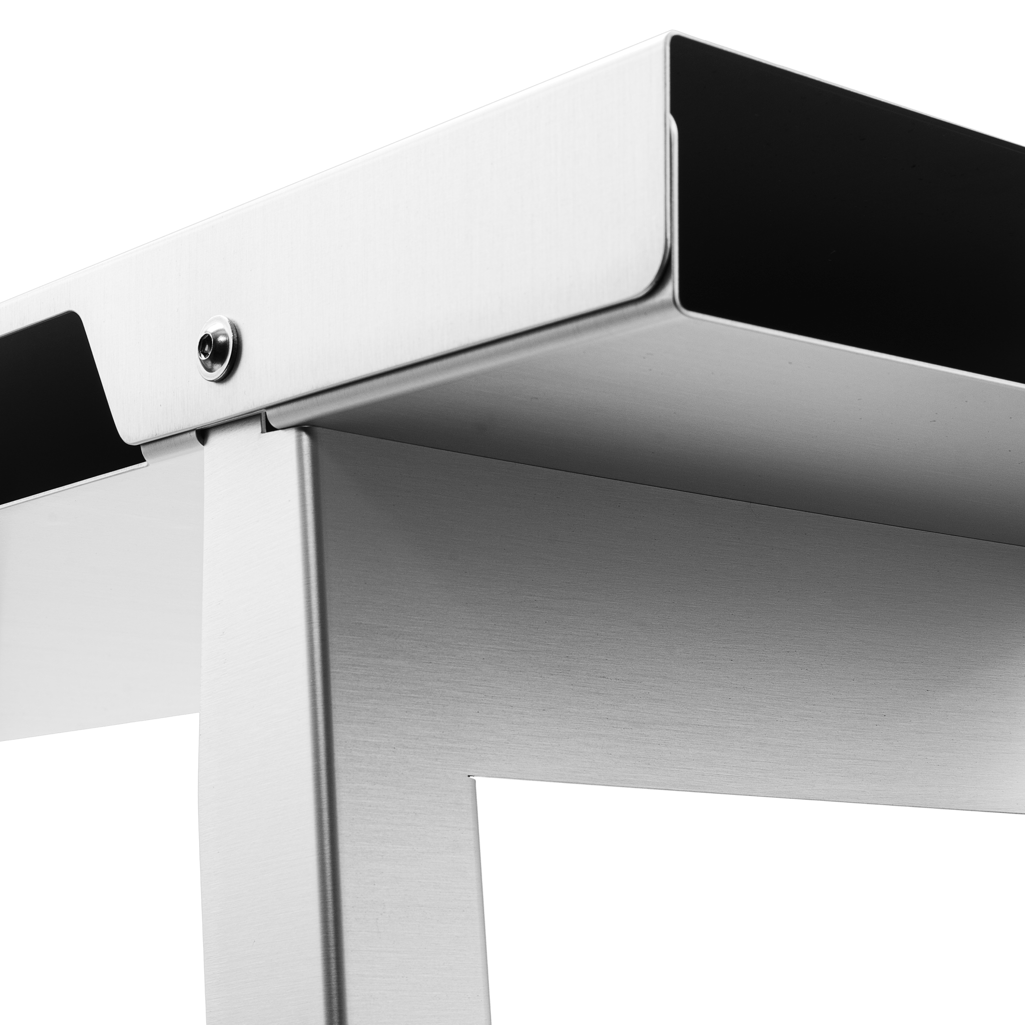 ディスプレイテーブル/スタンディングデスク。 A5052アルミニウム製、アルマイトヘアライン仕上げ。ソフトキャリーケース付属。
