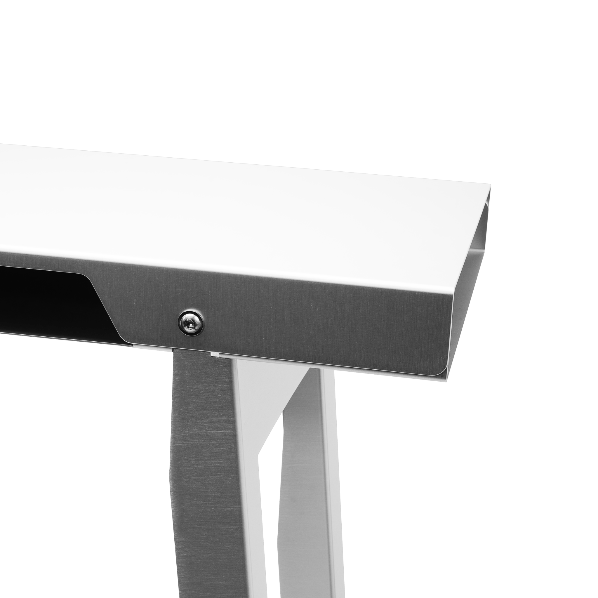 Console Display Table / Standing Desk. A5052 Aluminum, Anodized Hairline Finish. Soft Carry Case Included.