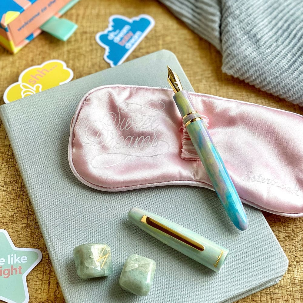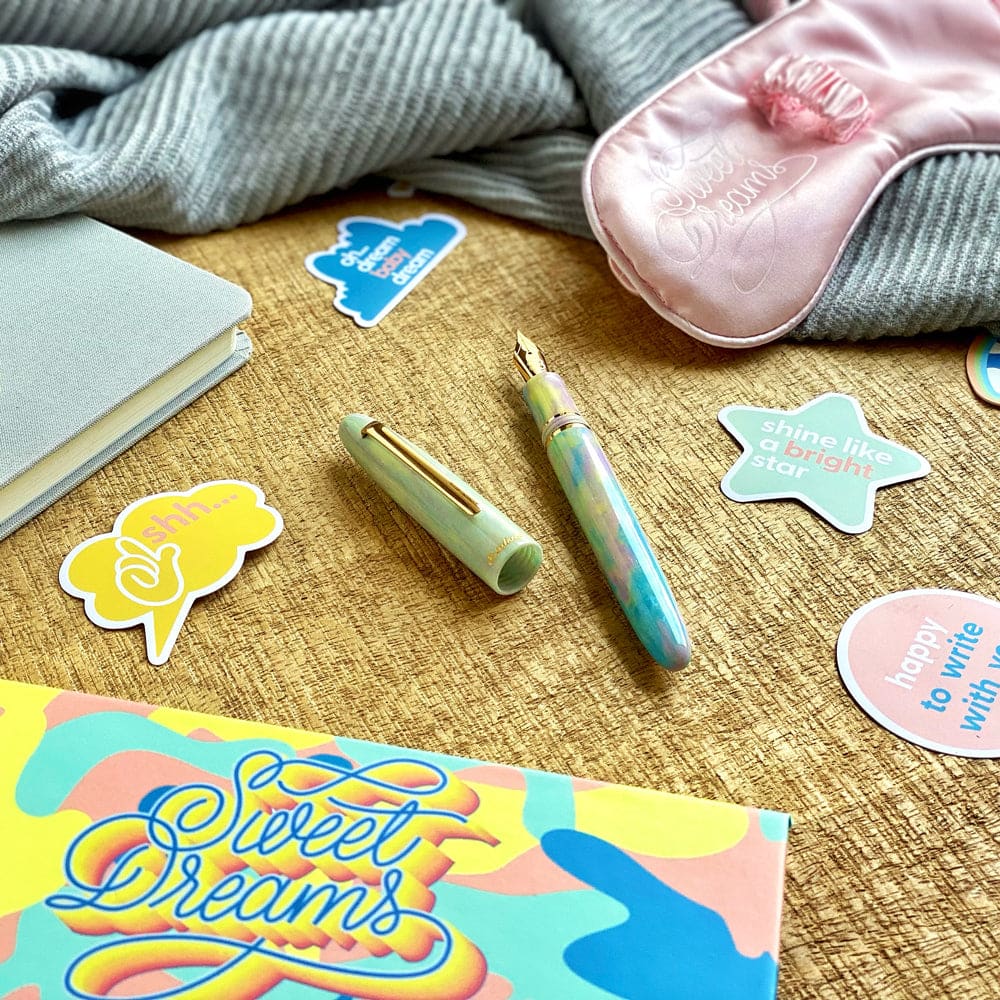 No detail has gone unnoticed for this launch. From the artist-designed box to the fun sleeping mask that doubles as a pen holder, we've combined whimsy with sophistication to bring you one of our most exciting launches to date. Every element has been thoughtfully crafted to ensure a delightful experience, making it not just a writing instrument, but a charming addition to your collection. Whether you're a pen enthusiast or looking for the perfect gift, Sweet Dreams promises to captivate and inspire with every stroke.