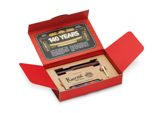 As a perfect addition, the limited set includes a nostalgic clip in gold to attach the pen securely to a writing pad. Besides the standard royal blue ink cartridge in the fountain pen, there is also a convenient 10-pack of all Kaweco ink colours for individualising your own writing. Everything together is placed within a packaging, which is inspired by historical cardboard boxes from back then.