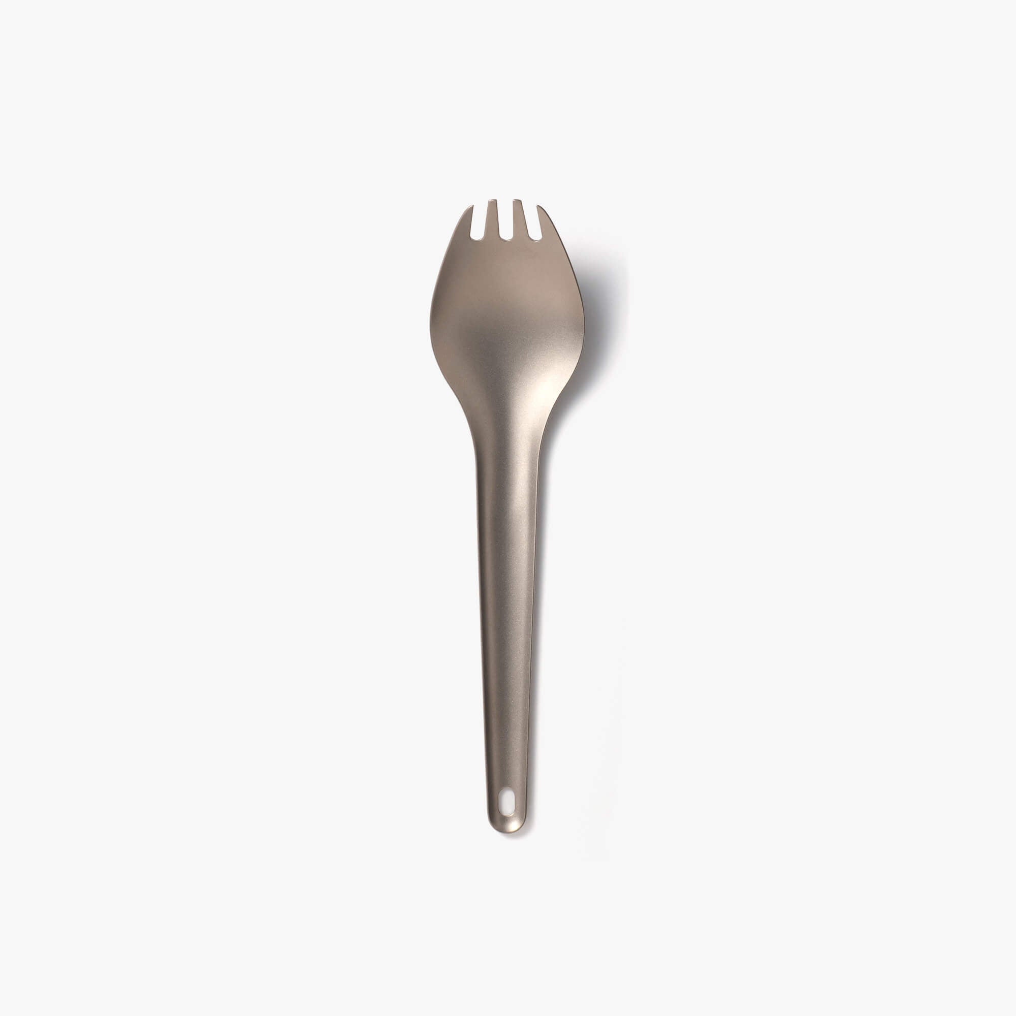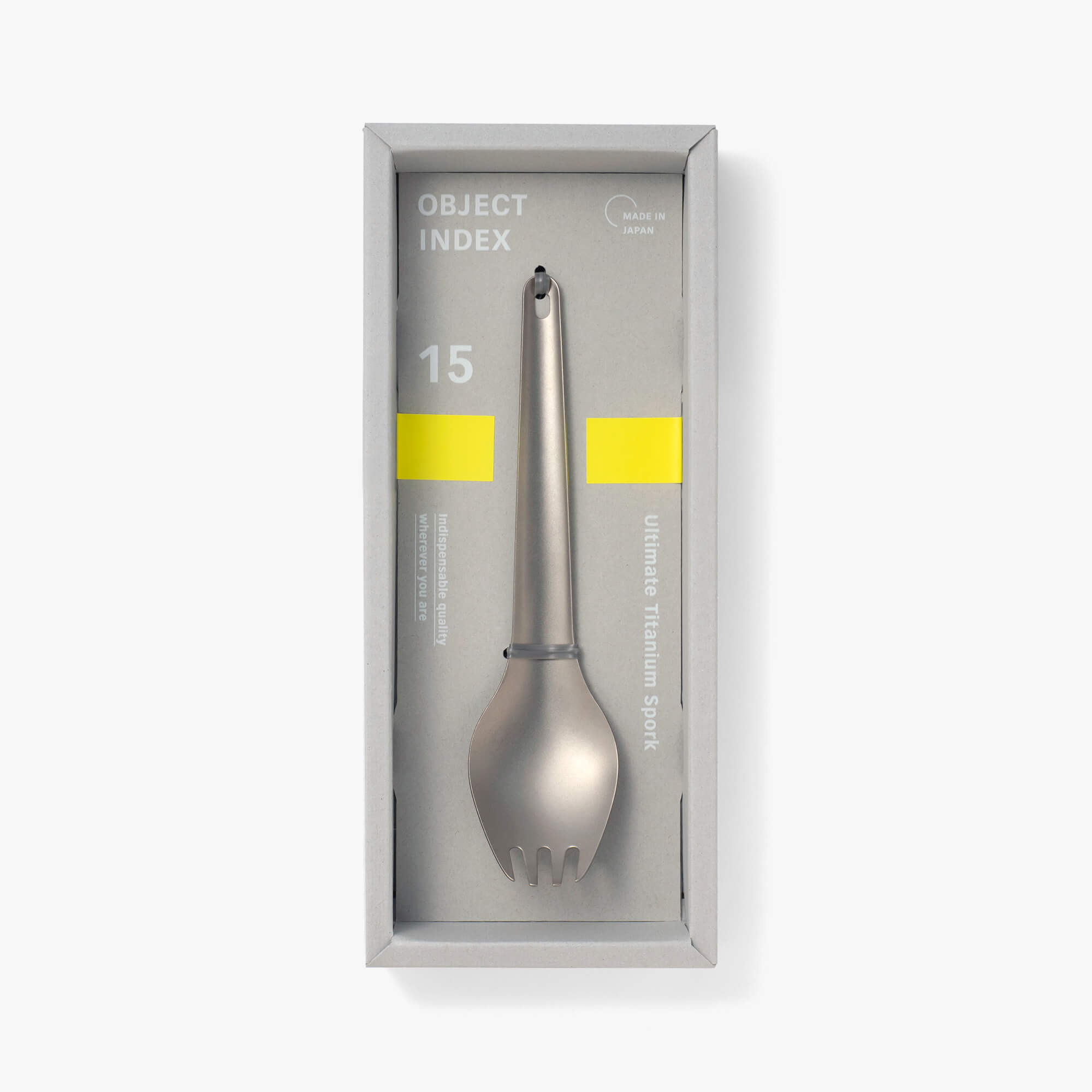 The spork is crafted by a metal fabricator in Tsubame in Niigata prefecture, the home of Japanese metal craft. While designed for camping and outdoor use, the multifunctional utensil is just as handy at mealtimes in the office. Made from lightweight, rust-resistant, and hypoallergenic titanium.Material