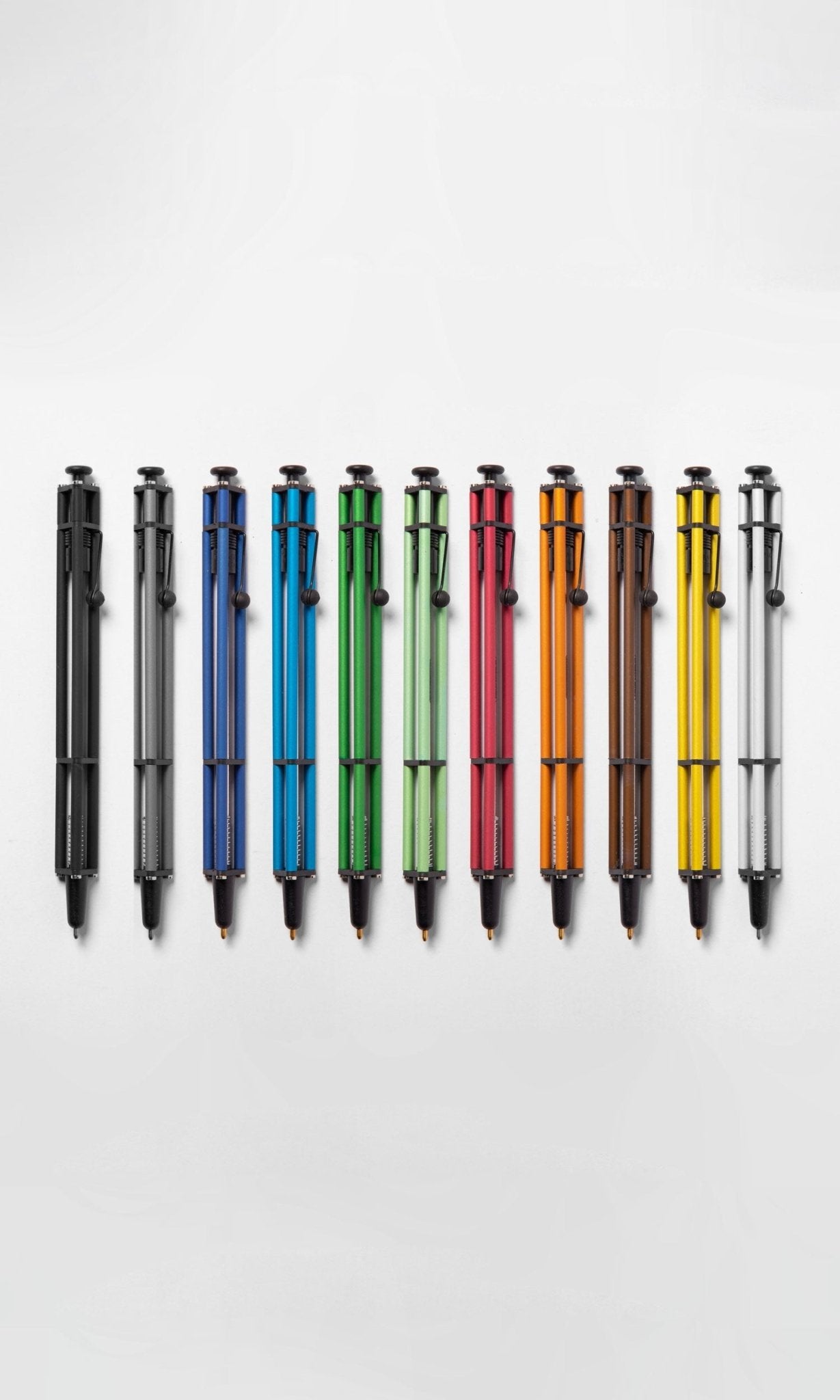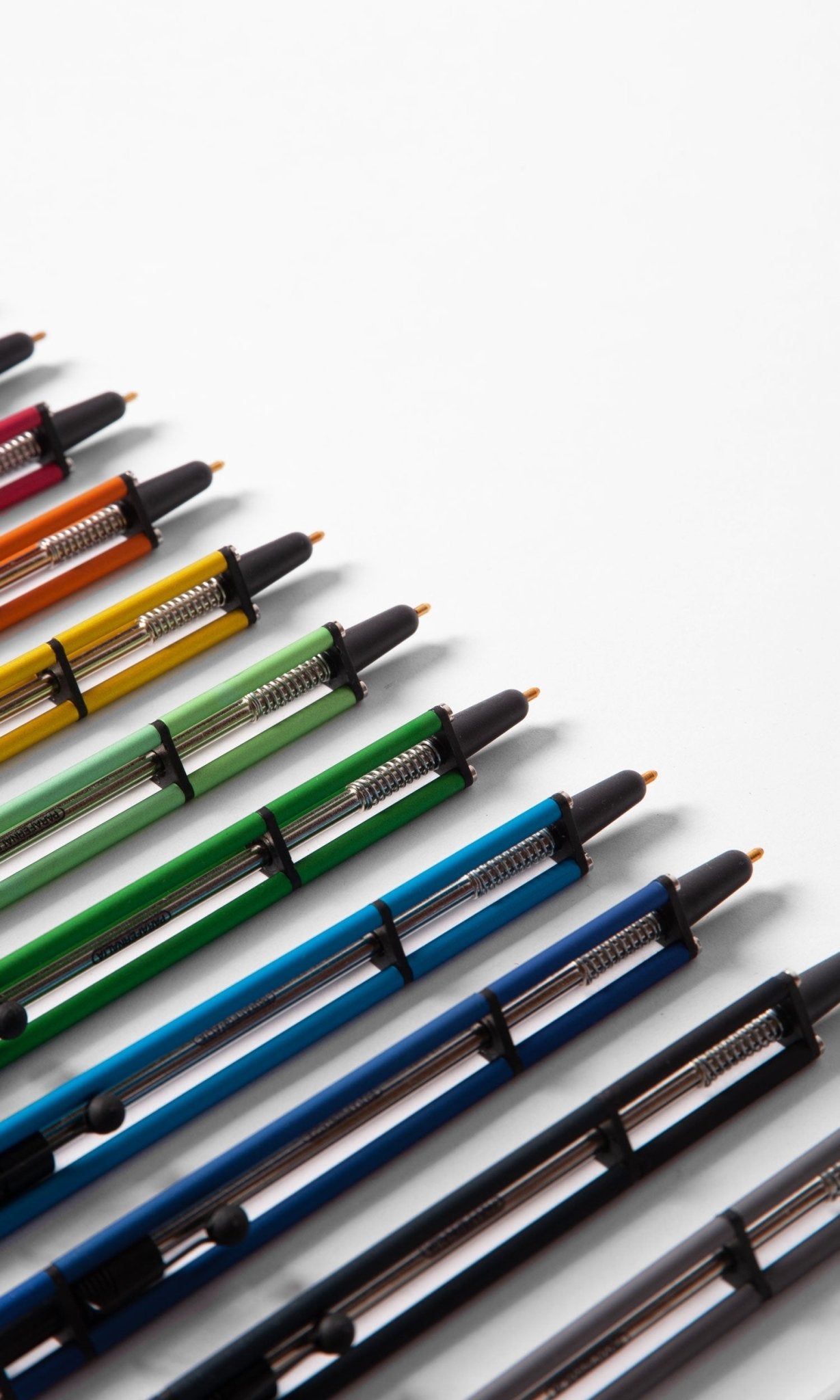 Revolution pen: undisputed icon of writing innovation. Unique in its kind and designed in 1978 by Sergio Carpani as a commemorative object of the construction of the Beaubourg in Paris, it continues to attract the attention of the new generations of professionals and enthusiasts with its 31 pieces entirely produced in Italy and assembled completely by hand. Made of anodised aluminum, this writing instrument is available in both the sphere and the mechanical pencil version, in 12 different colors.