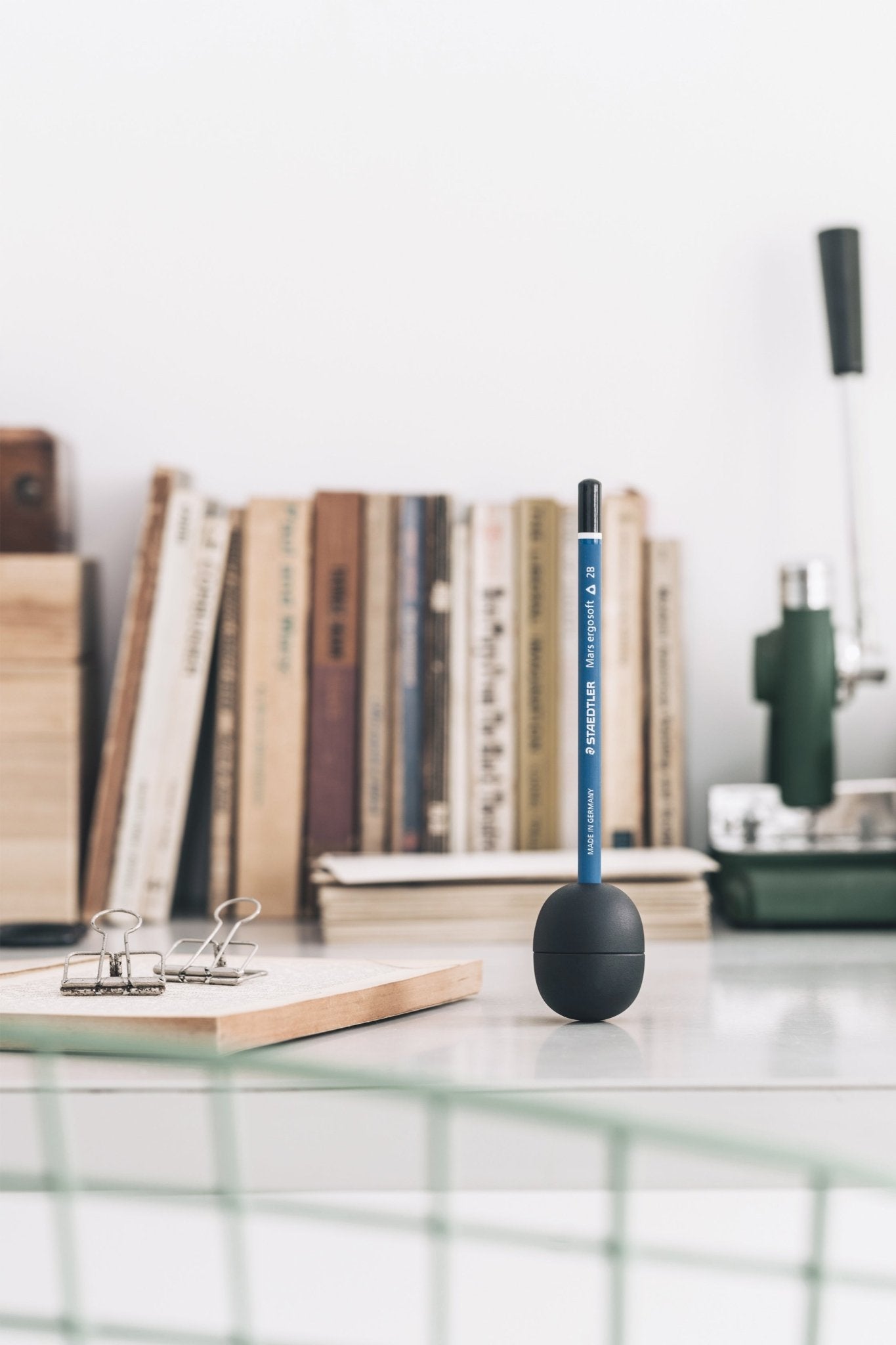 The design for our pencil sharpener was inspired by Japanese capsule toys aka gashapon. The top is an integrally-formed aluminum sharpener while its lower half is a weighted zinc alloy. Resting on its heavy bottom, this egg-shaped pencil sharpener can rock around like a roly-poly toy. When held, it feels like one solid piece although it can be emptied by its separation line in the middle. This unique and interesting item will create a harmonious atmosphere in the workspace. It also represents the everyday balances of life and work.