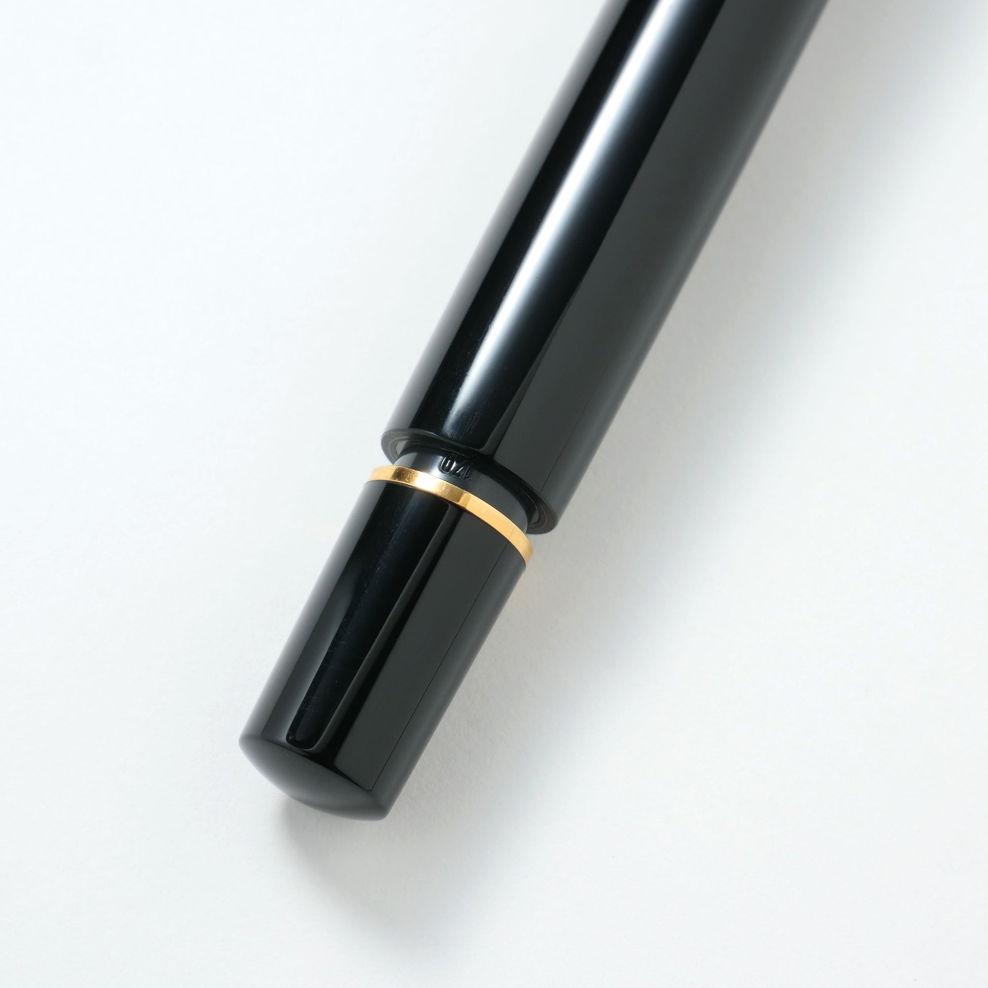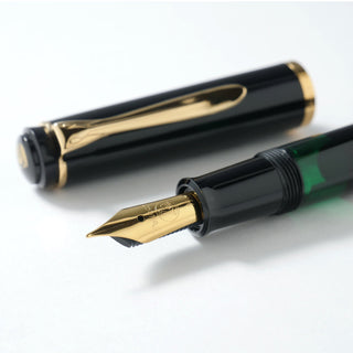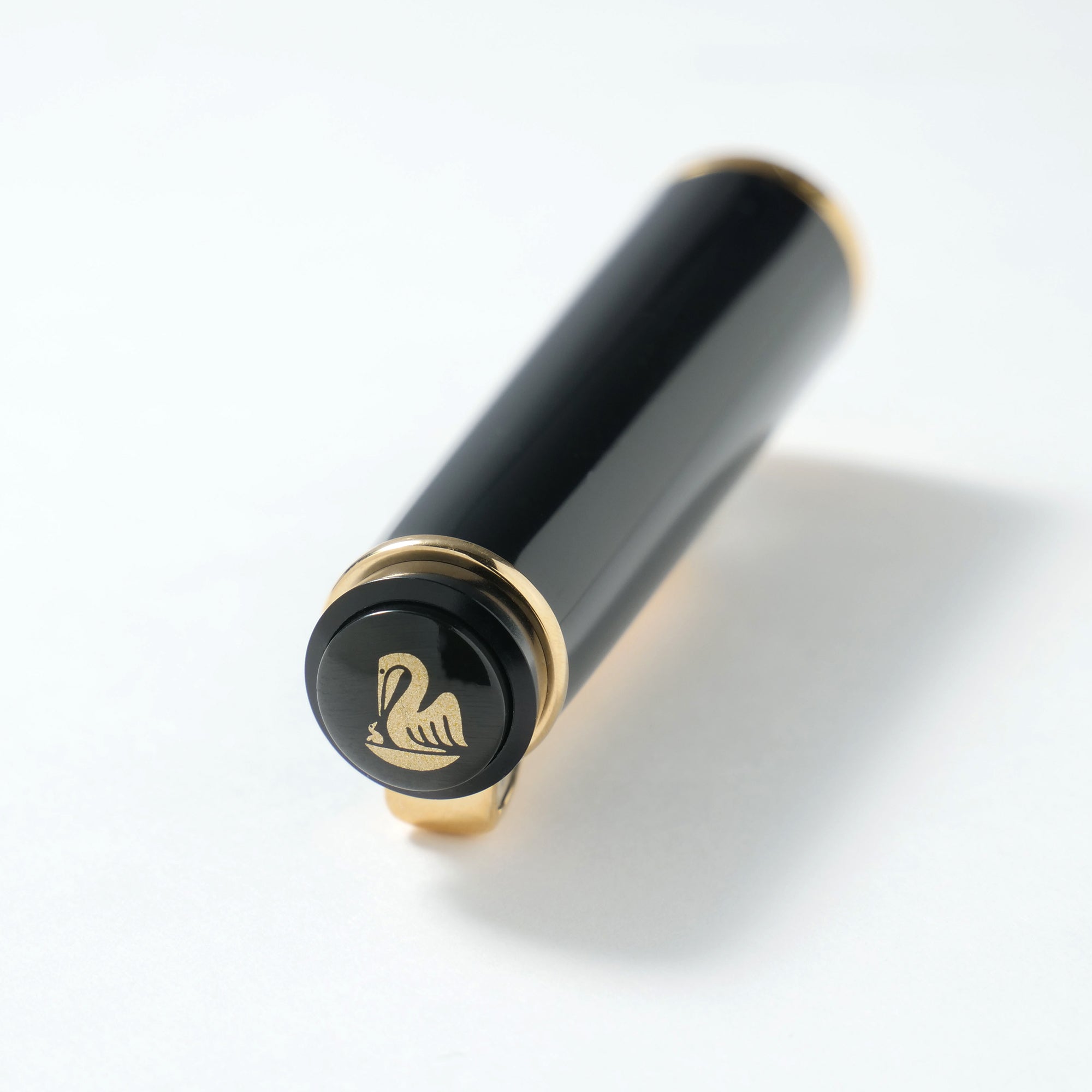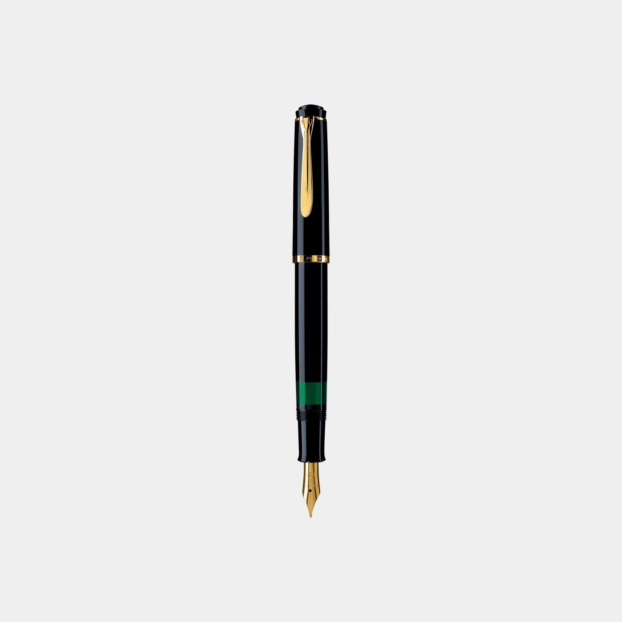 The writing instruments in these series are the epitome of classical writing culture. Featuring a perfect appearance with an unmistakable Pelikan design, they form the elegant writing instruments of our timeless, beautiful Classic series. The deep black casing material consists of high-gloss, polished high-grade resin. Through the use the material tends to polish itself which gives the writing instrument its long-lasting shine. All highlights, like the traditional beak-like clip and the rings are 24-carat gold-plated. The fountain pen with piston filling mechanism providesa 24-carat gold-plated stainless steel nib and is available with the nib sizes F and M.