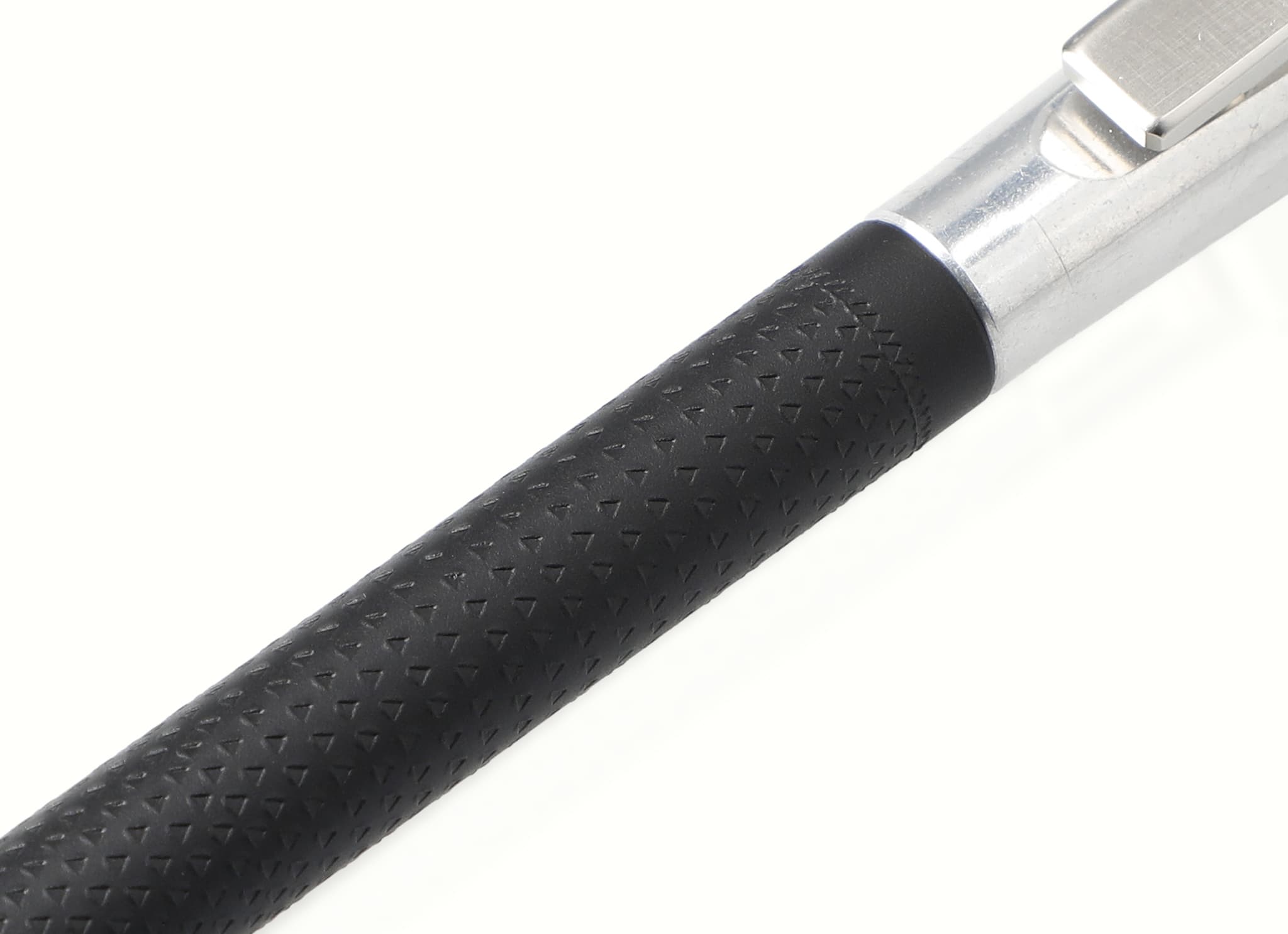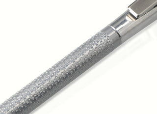 Individually crafted solid metal ballpoint pen with a unique U-clip. This dot texture means that even with a light grip you can write comfortably. Enjoy the smooth ink flow of Jet Stream Uniball refills. When your hand isn't tired you have better control. Effortless writing. This is a thinking tool. Ink cartridge included: SXR-5 0.5mm waterproof ink. Patent pending. Weight 26g. Handmade in Japan.Improved smoother "click"