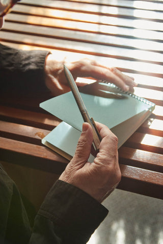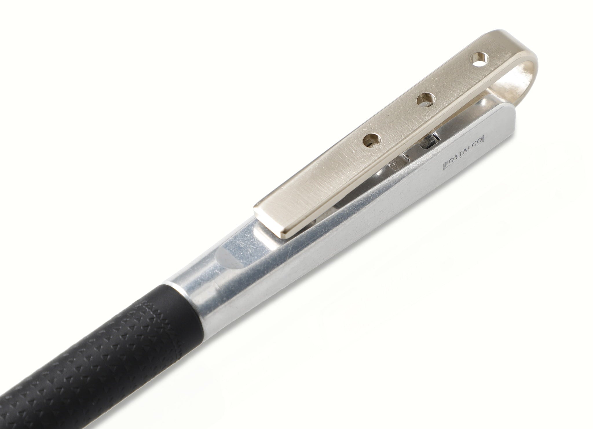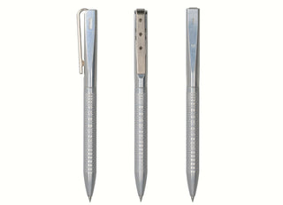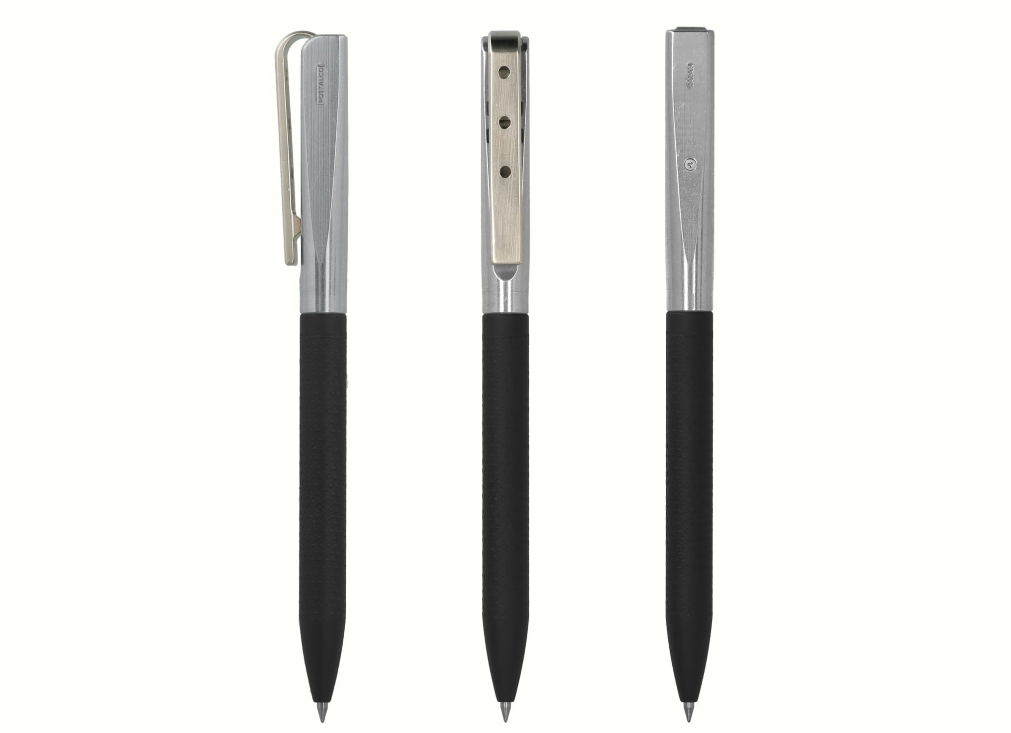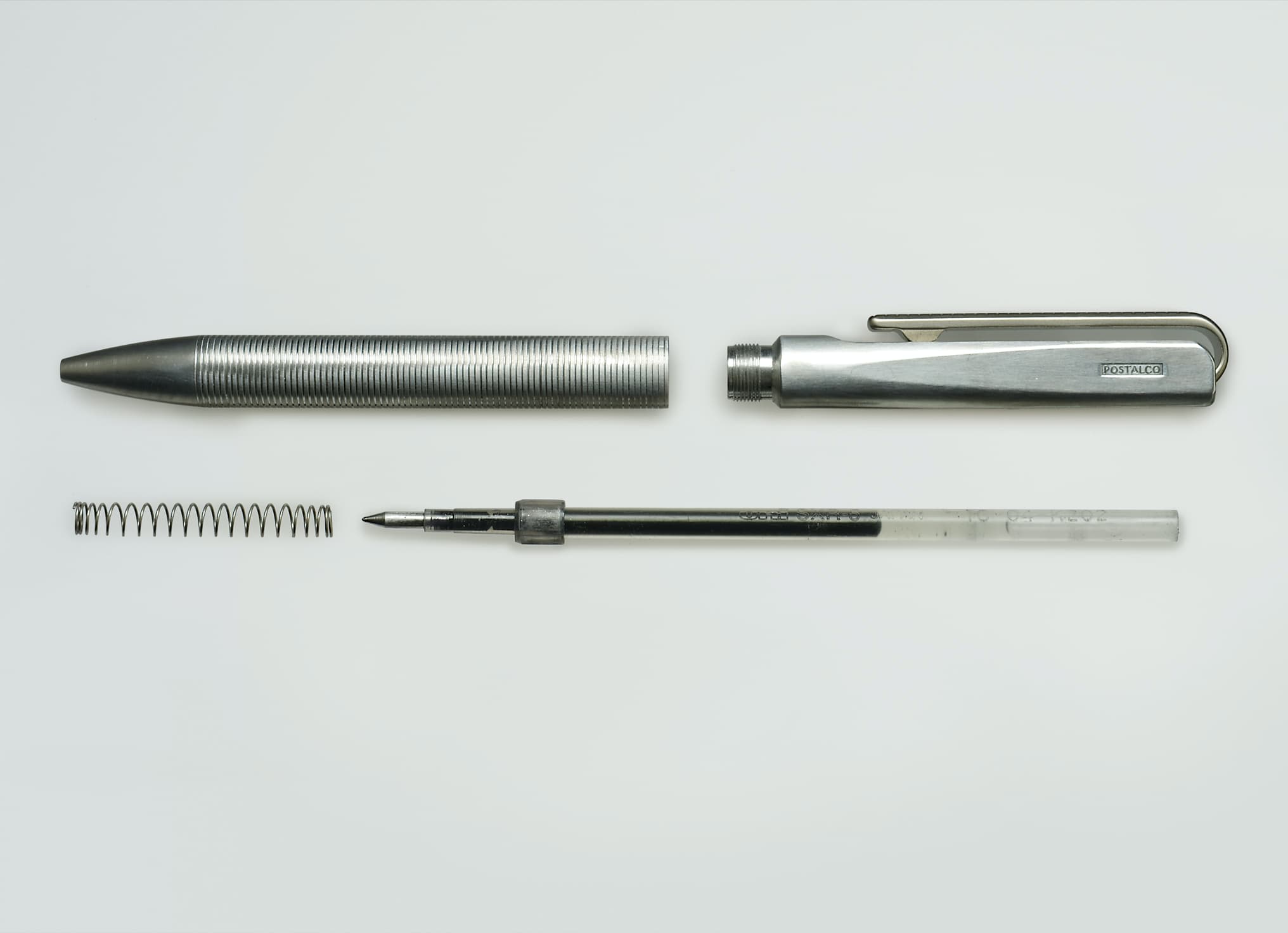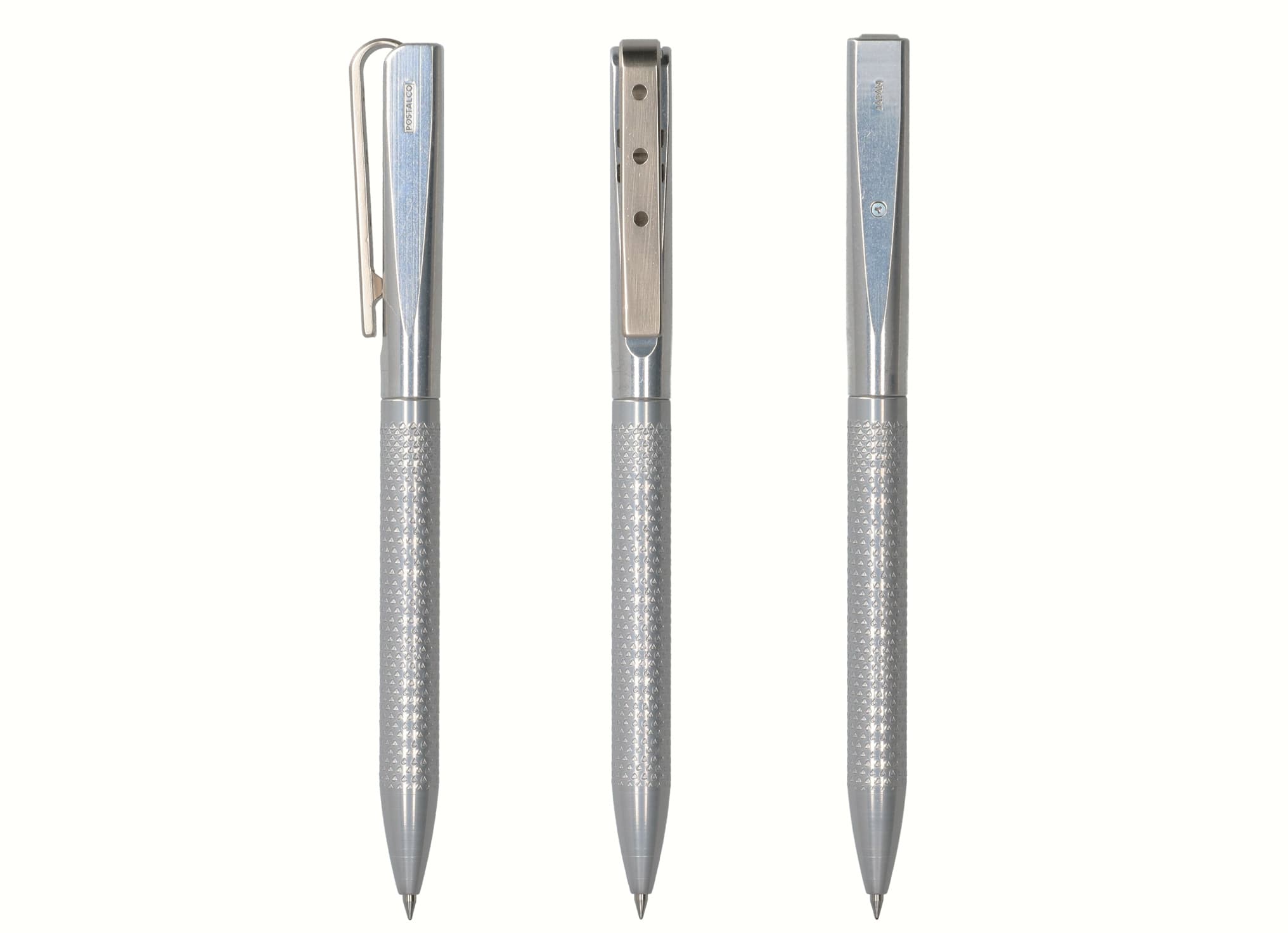 The entire body is cut from solid aluminum while the clip is cut from solid brass. This combination has the stability we love without being heavy. Refills available worldwide.