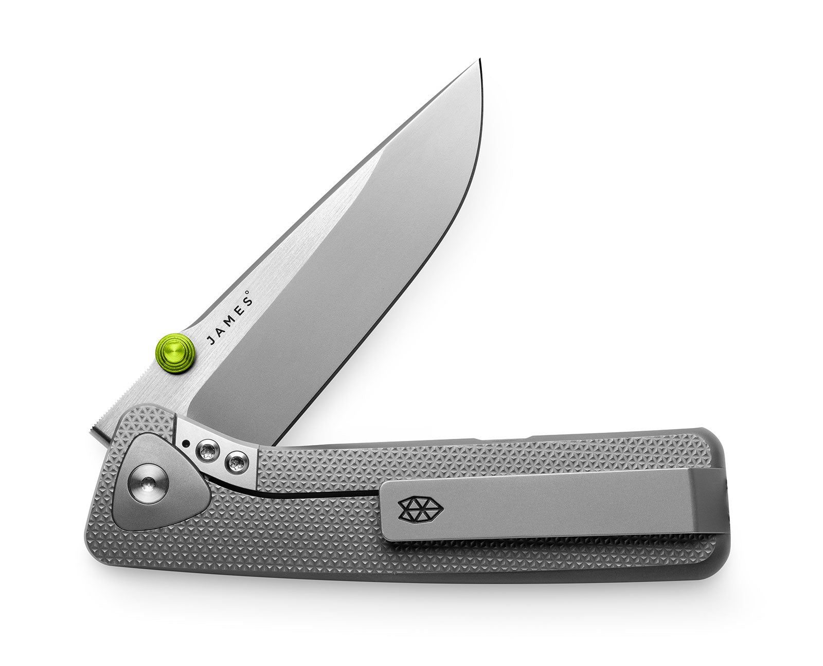 At The James Brand we're dedicated to making the very best knives and tools and to always pushing the boundaries of what is possible. In that spirit, we are proud to introduce the Barnes. The Barnes is a titanium framelock, and it's our very first integral design. The Barnes is CNC-machined from one solid billet of 6AL4V titanium, which means fewer parts, less maintenance and the ability to do things with the form that you cannot do in standard knife construction. The Barnes is built around a 3.5 inch Bohler M390 stainless steel blade; this is our first knife with M390 which is widely regarded as the singular best blade steel. The blade runs on a stainless steel pivot and ceramic bearings, and the clip is CNC-machined titanium as well. The Barnes comes with our very first coin design, as it's bad luck to give a knife as a gift without exchanging the coin, and comes with a paracord lanyard. It's the finest and most technically advanced knife we've ever made.