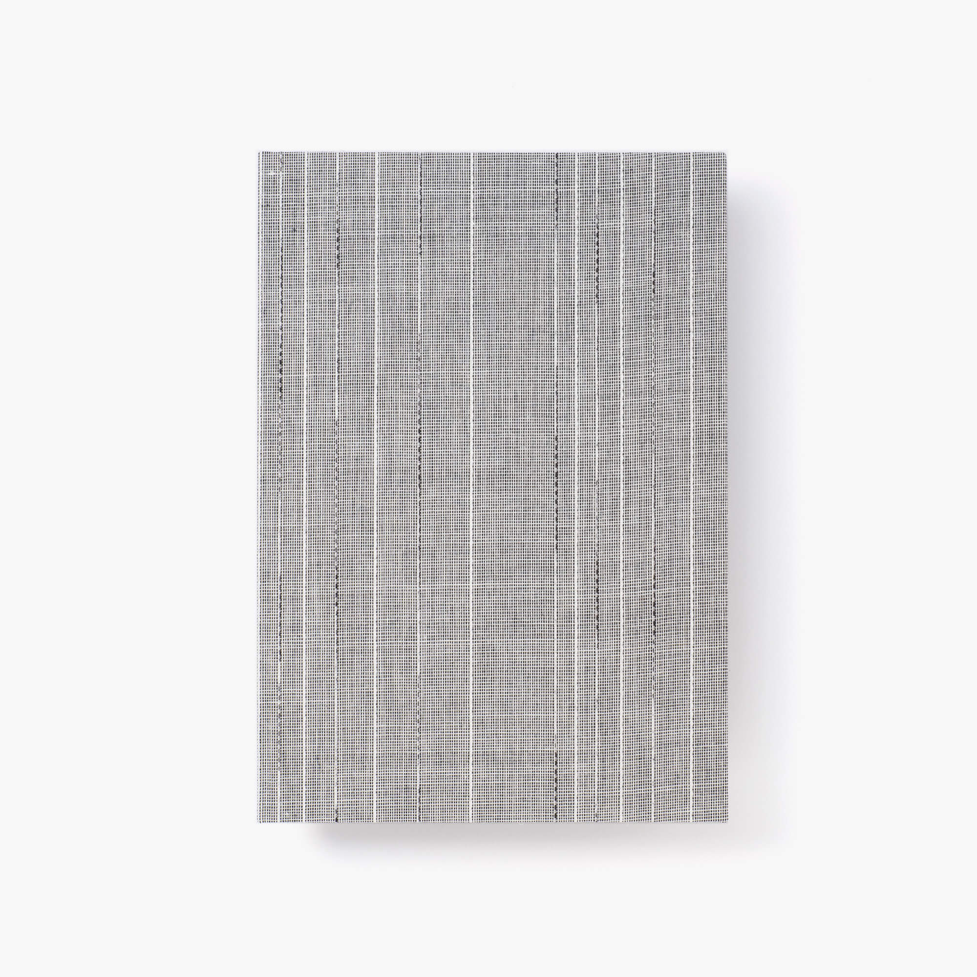 The fabric is made in Hamamatsu, Shizuoka prefecture, a region known for its yukata production. The subtle vertical stripes depict a scene of drizzling rain, and the delicacy of the weave is best admired up close. A simple yet sophisticated notebook.
