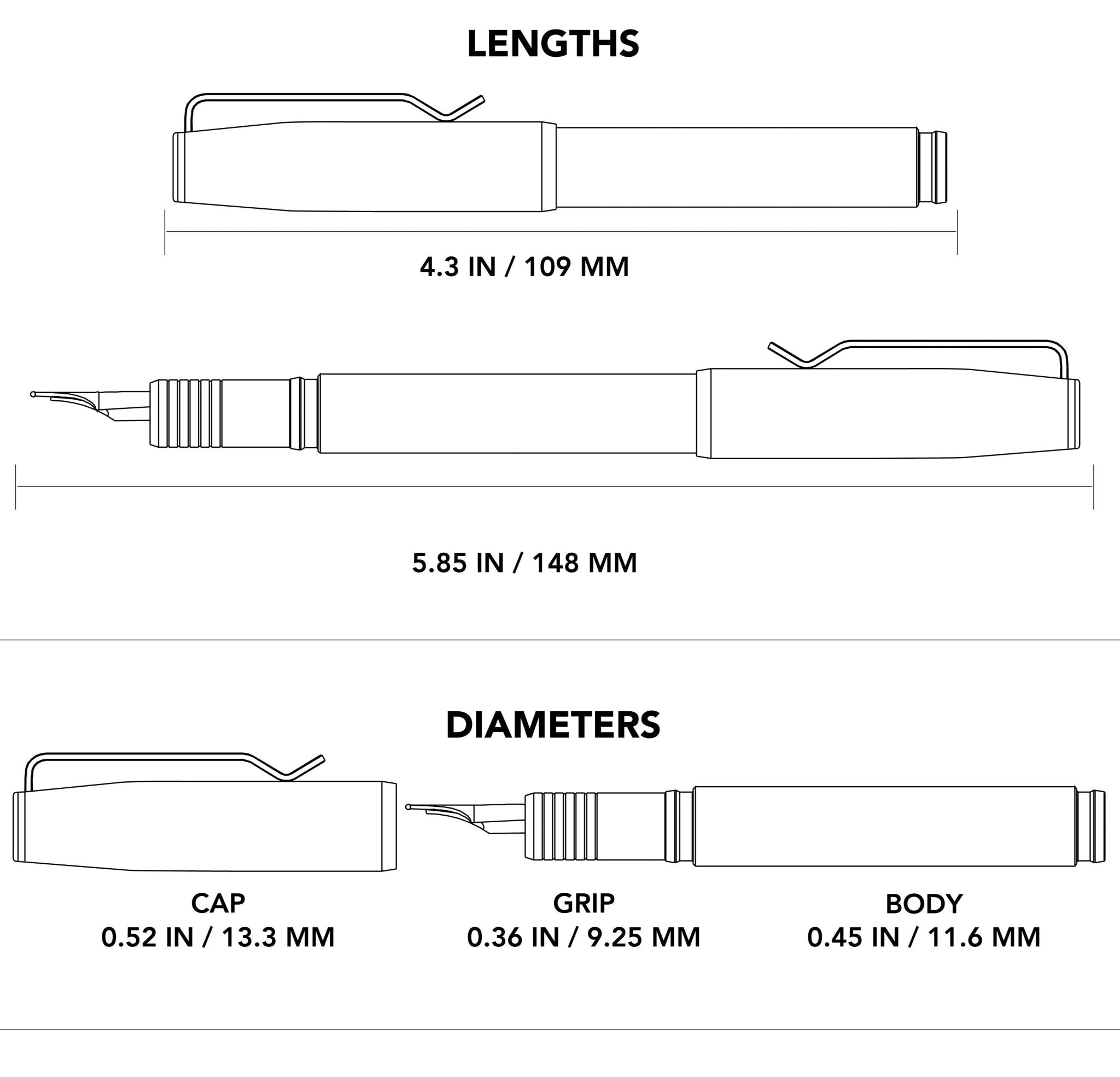 It features a milled Chaves deep carry pocket clip, an addicting pull cap design, and is compatible with international ink cartridges. Yes, there's even a Kaweco Black Pearl ink cartridge included.