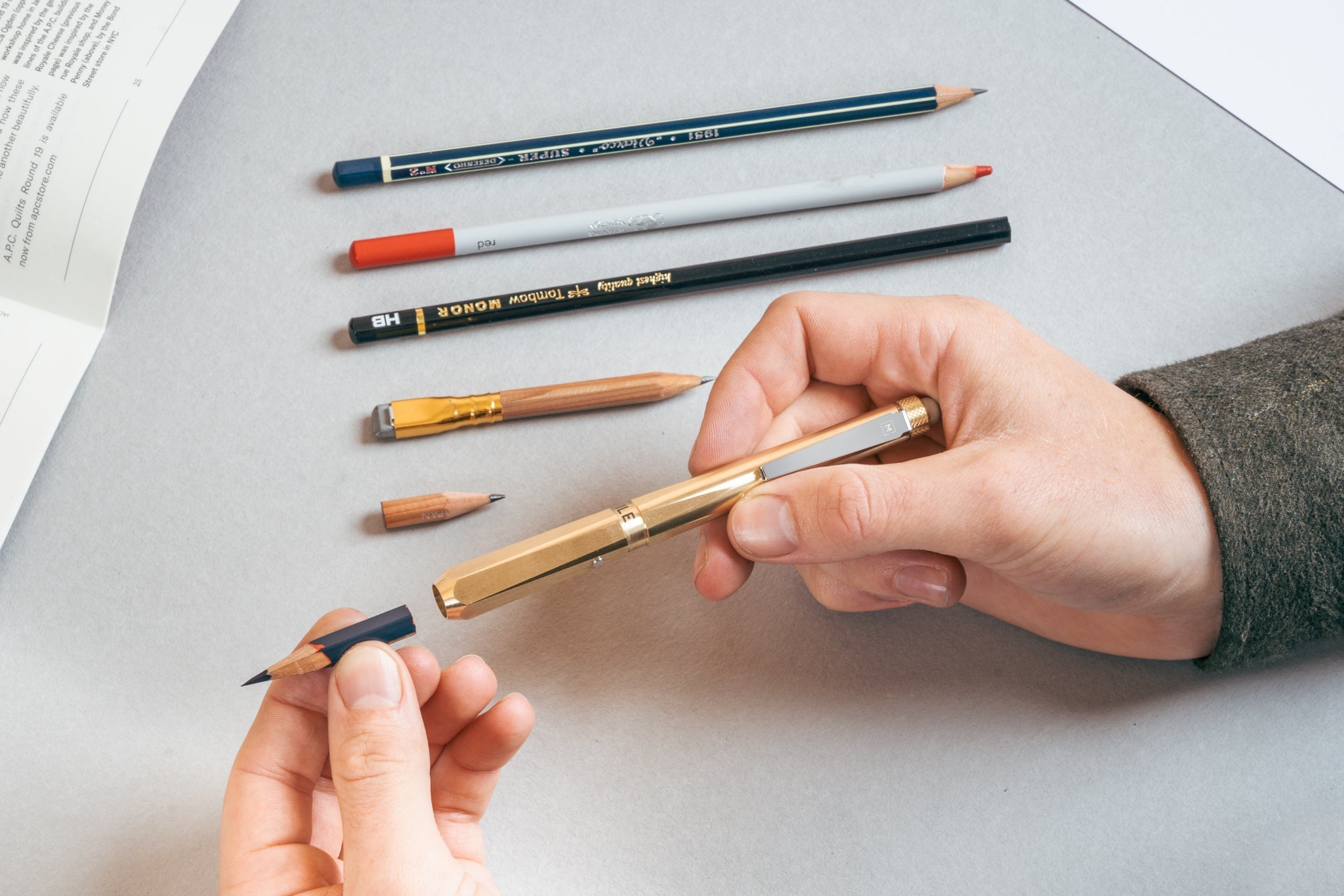 Ferrule is a pencil holder which simultaneously takes the best features of pencil extenders, the most cherishable attributes of premium pen design, and the thoughtfulness of mechanical pencils to create a statement work of art that will minimise wastage throughout your work.