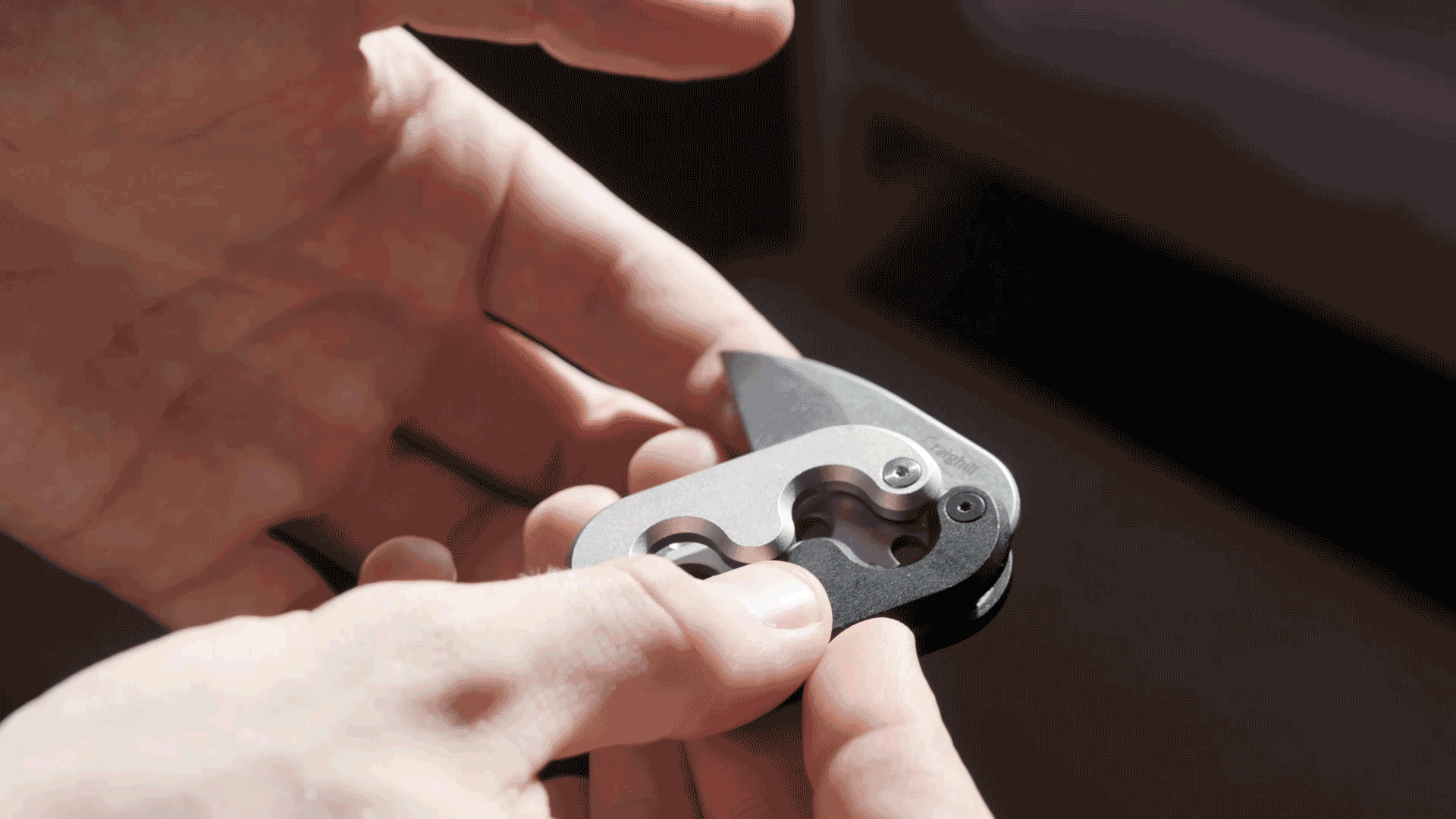 A continuation of our collaboration with Chen Chen and Kai Williams, the Sidewinder Knife Mini is the latest member of the Sidewinder Knife family. It retains the enigmatic motion of the original Sidewinder Knife and the Sidewinder Knife Deluxe — in a smaller, lighter, more portable package. Truncated rather than scaled down, the Sidewinder Knife Mini packs in more daily carry utility, with its shortened straight blade, lightweight aluminum body, and portability-promoting keyring loop.