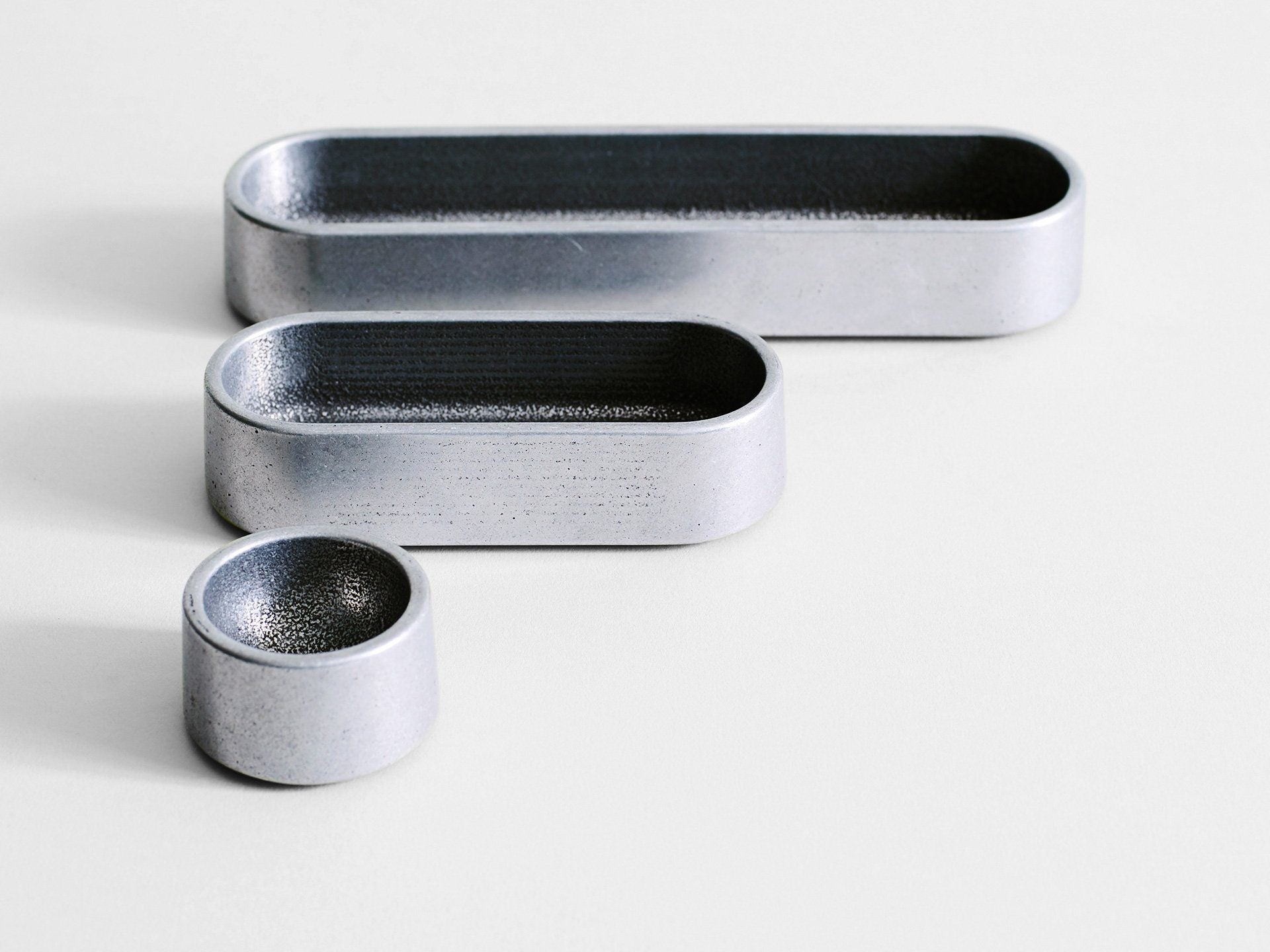 Stack trays are sold in a set of three can be used together or individually. Group them on your desk, dining table or next to the bed. Stack trays are made, polished and finished in Sydney, Australia in polished aluminium.