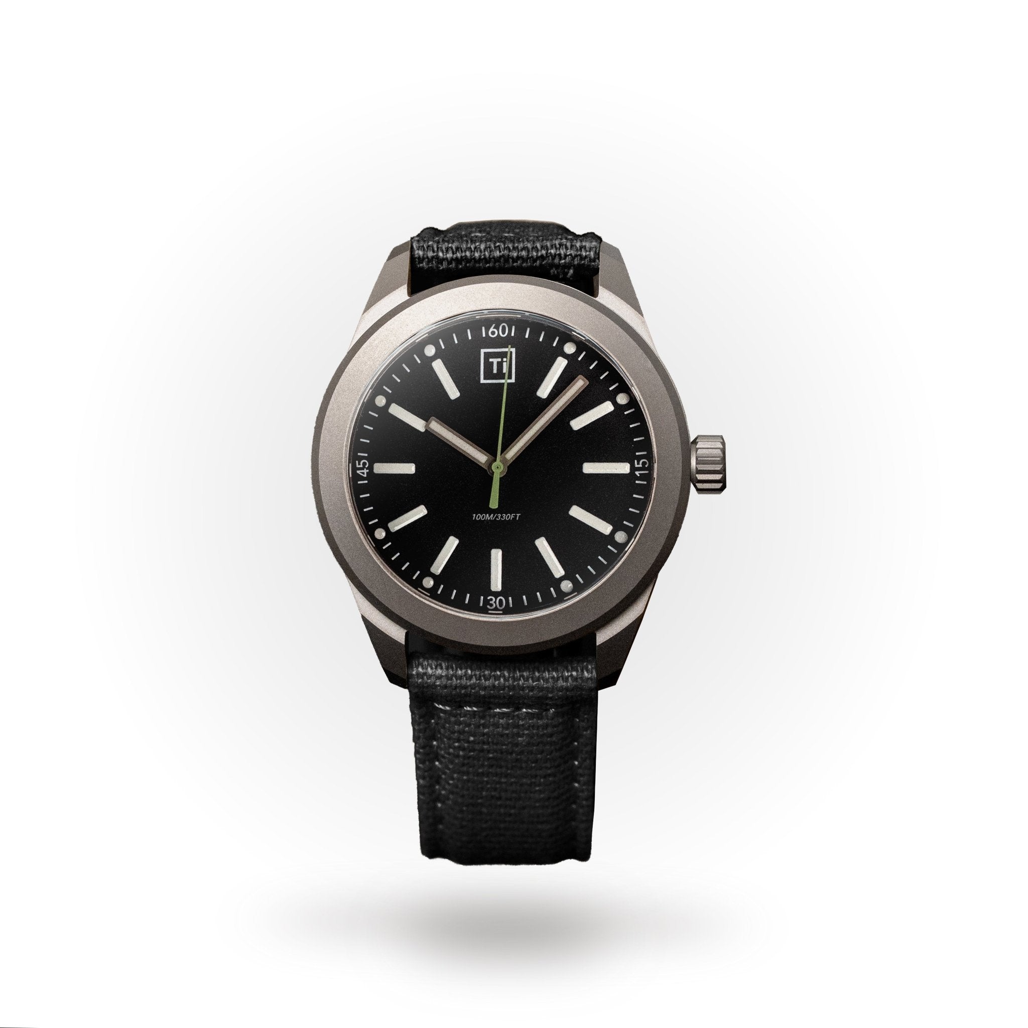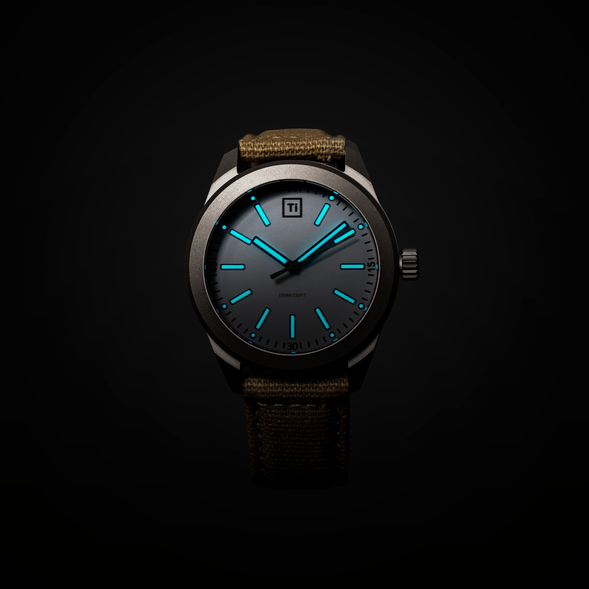 •Two Piece Canvas Strap W/ Leather Backing and Titanium Buckle