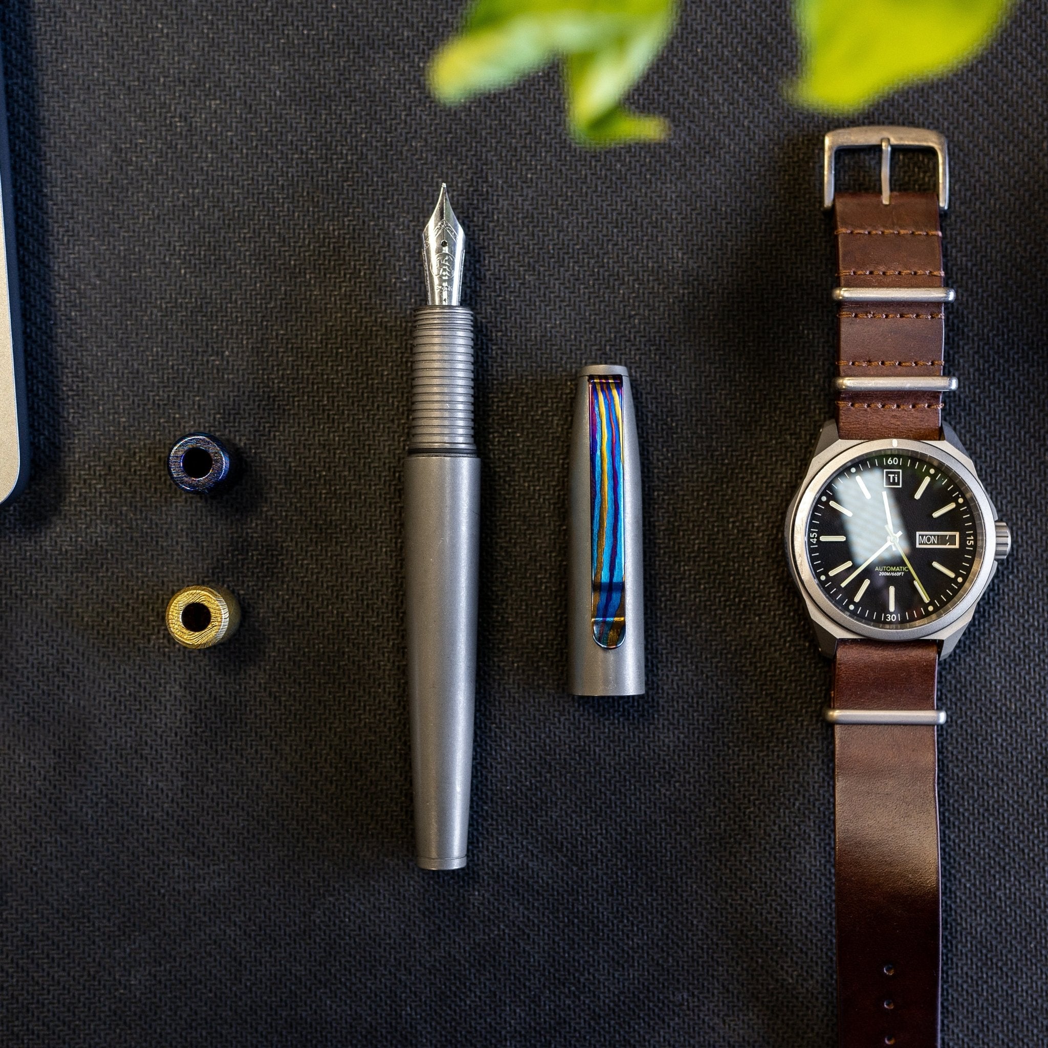 These titanium Damascus pen clips are perfect for making your pen uniquely yours. Every clip is polished and torched by hand, every piece has it's unique pattern and colors, it's a perfect way to make your pen special!