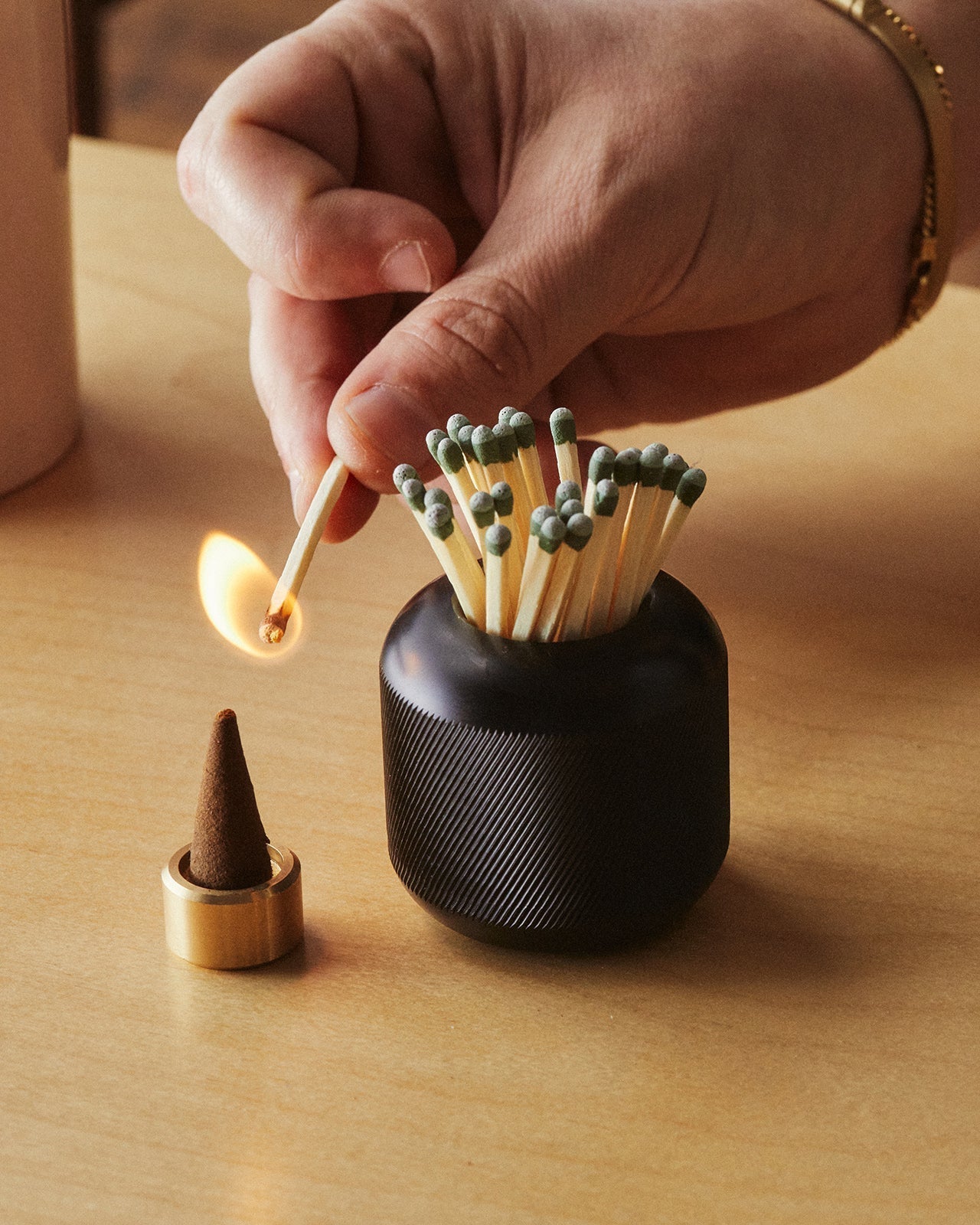 The Match Striker is destined to become central to your combustion-focused rituals. Whether you're setting a mood with incense, creating ambience with candles, or building a mighty blaze – it all starts with a flick of the wrist. Crafted from carbon steel with electroplated black zinc, the Match Striker is surprisingly dense and serves as a nice anchor against which to create a spark. The exterior surface features a deep knurling pattern, which provides the necessary friction to bring it all together.