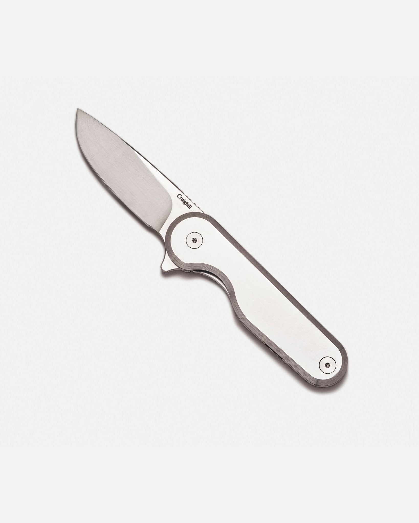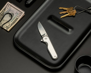 The culmination of more than two years of design and prototyping, the Rook Knife is a frame lock folding knife with S35VN blade steel, a drop point blade, and a flipper mechanism for easy one-handed opening. Constructed entirely from metal, it's slimmer than most folding knives, but with greater density and heft.